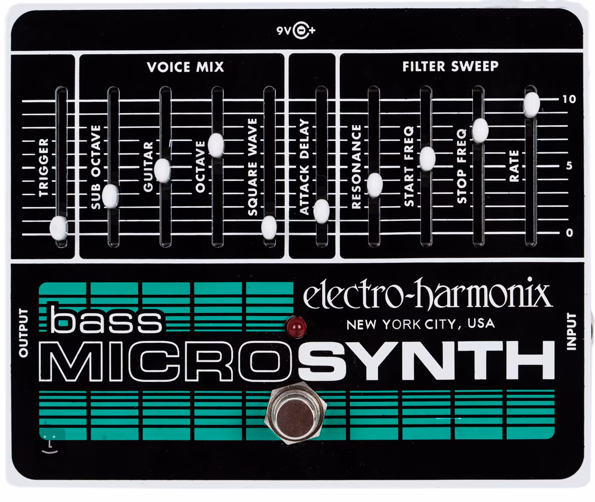 K čemu tento efekt slouží, je možná není na první pohled zcela jasné, ale po chvíli si uvědomíte, že na něm není nic komplikovaného – Microsynthesizer je krabička, která pomocí deseti posuvných ovladačů umožní přesné nastavení zvuku podle vašich požadavků. Jde o opravdovou tónovou laboratoř. Je postaven tak, aby co nejlépe spolupracoval s baskytarou.