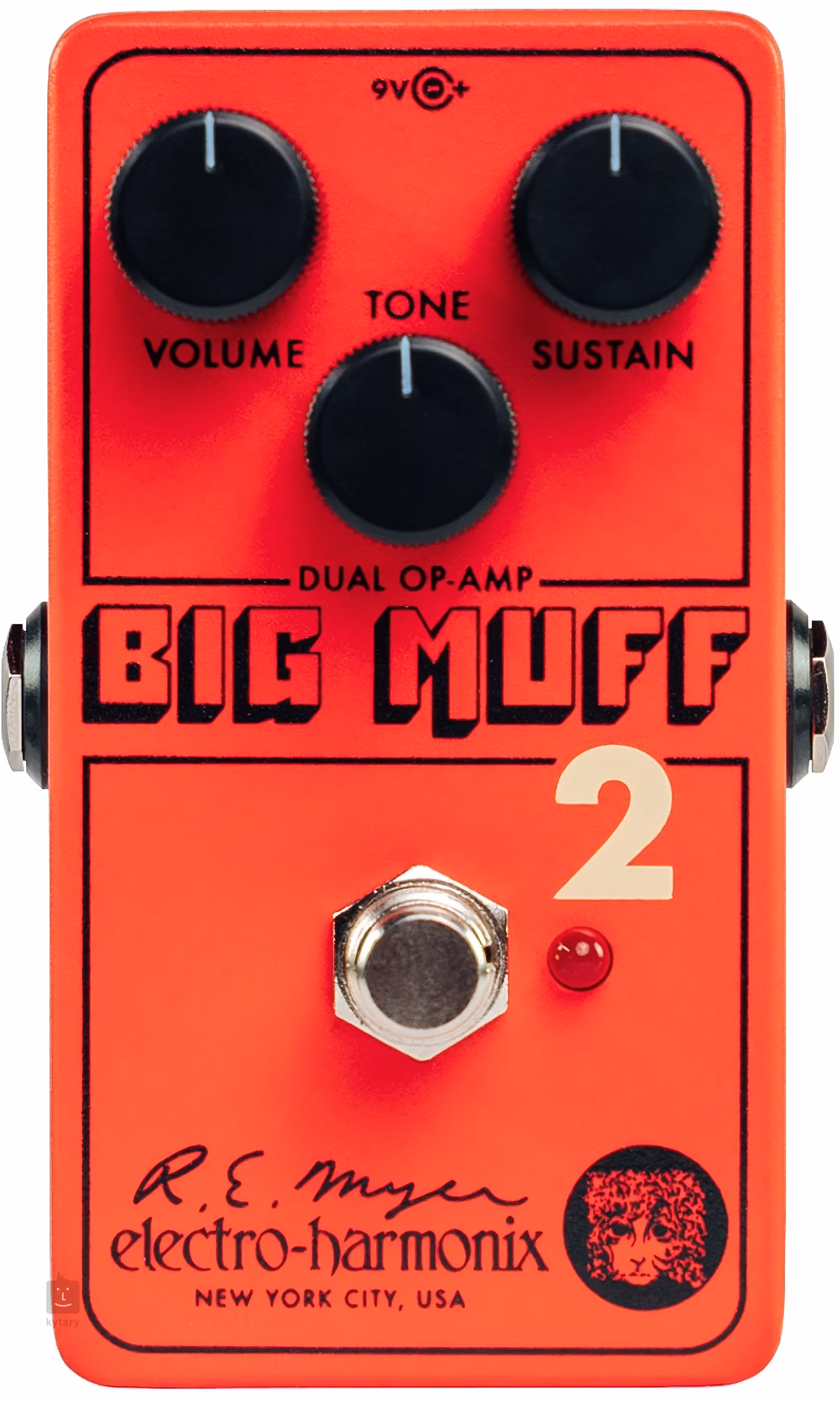 Ano, Big Muff Pi 2 je oprášený Big Muff Dual Op-Amp design z konce 70. let. Krabička v kompaktním šasi Nano pedálů EHX je v řadě hledisek podobná klasice Big Muff Pi z roku 1971, tj. nabízí krásně zpěvný sustain a pořádnou porci gainu, ale méně uhlazený clipping a dynamičtější více “fuzzy” zvuk ji jednoznačně odlišují. Ovladače kopírují originál - jejich nastavení určuje výstupní hlasitost, barvu tónu (EQ) a množství zkreslení/sustainu.