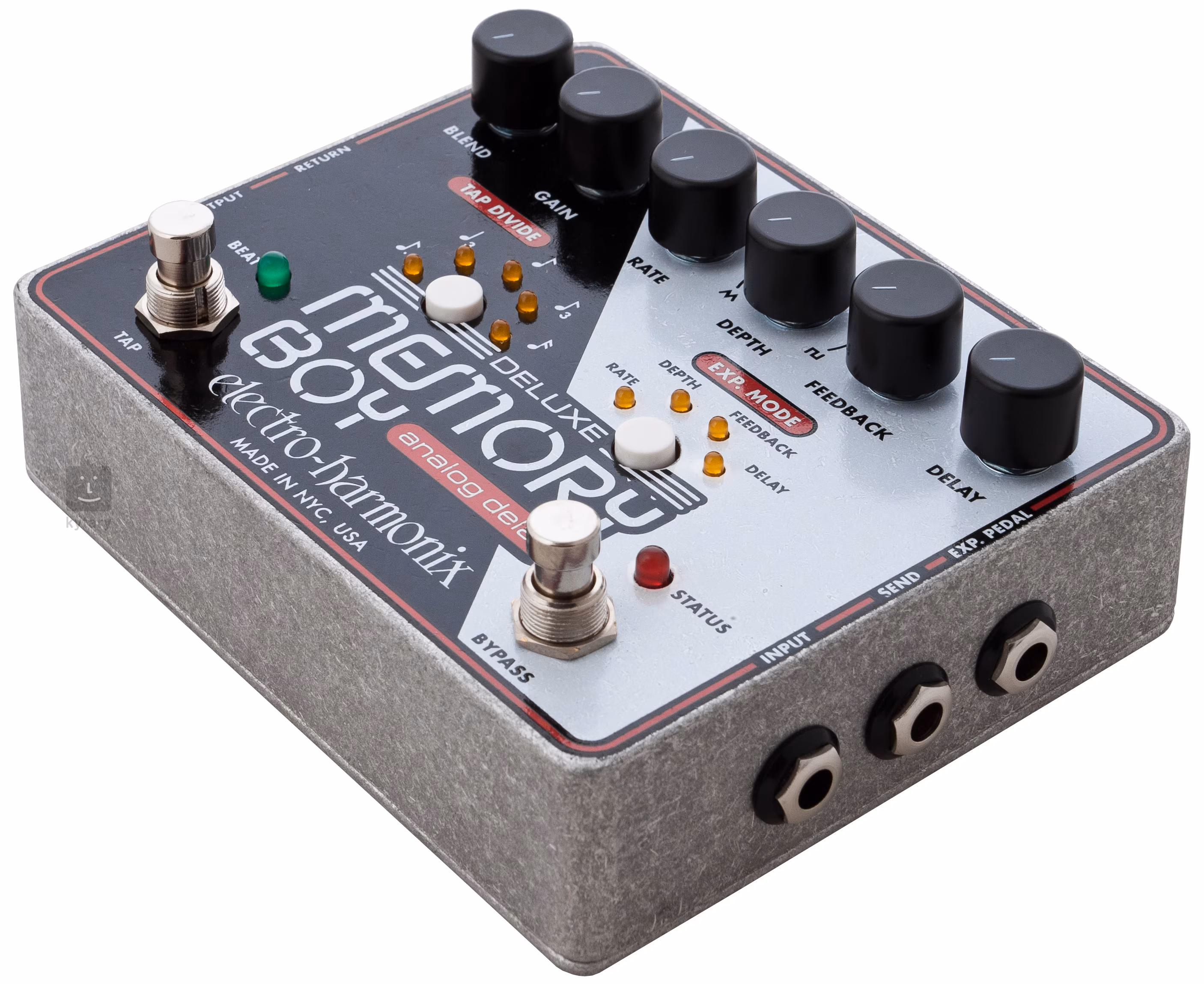 Americká značka Electro Harmonix si získala značné renomé díky produkci kvalitních analogových delay pedálů – ať už originálního modelu Memory Man, verze Deluxe Memory Man a dalších. Deluxe Memory Boy je jednou z rozšířenějších bohatších verzí.