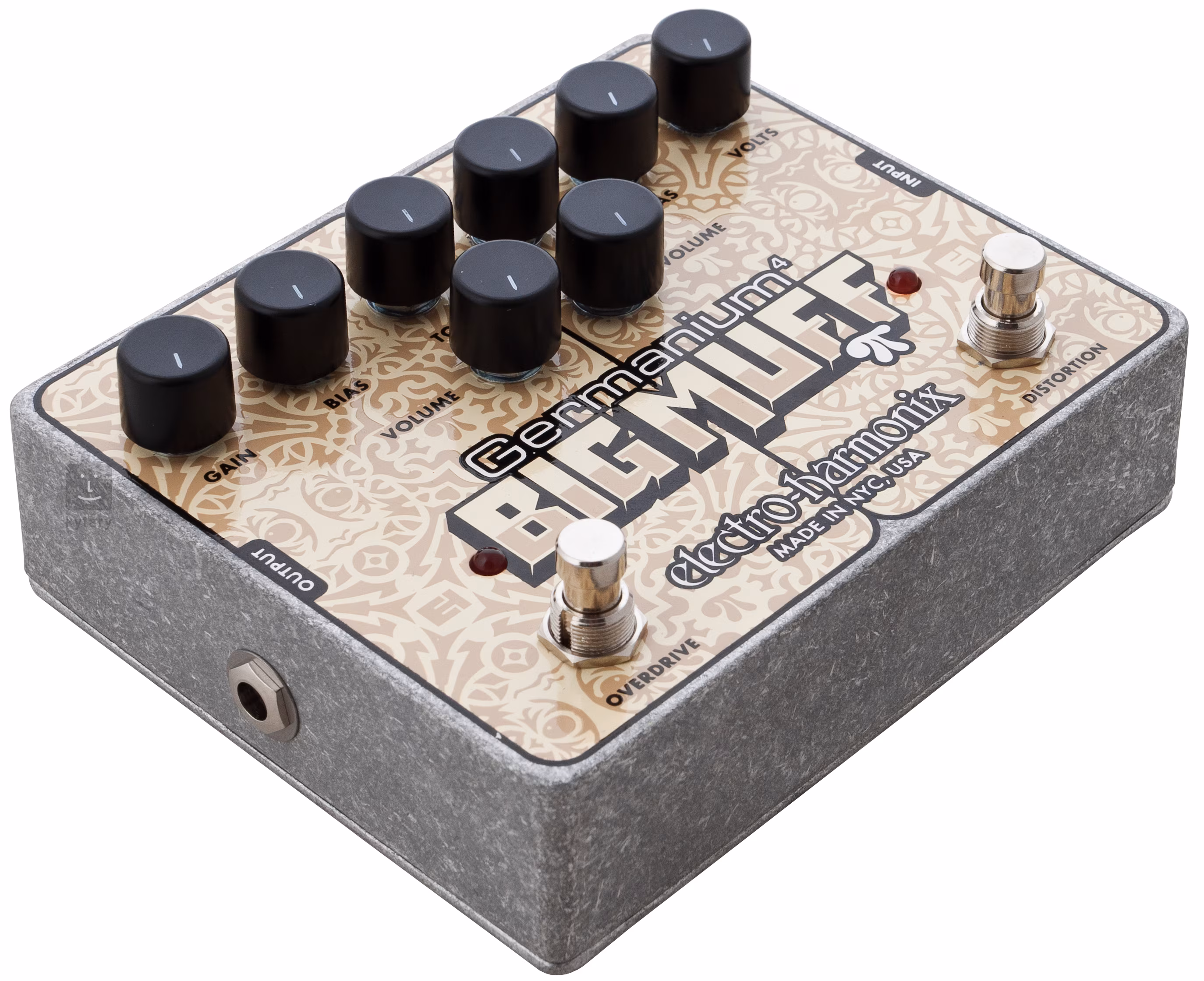 Germanium 4 Big Muff PI nabízí v jednom těle samostatné obvody efektů Overdrive a Distortion s vlastním setem ovladačů a dvěma germaniovými tranzistory v každém obvodu.