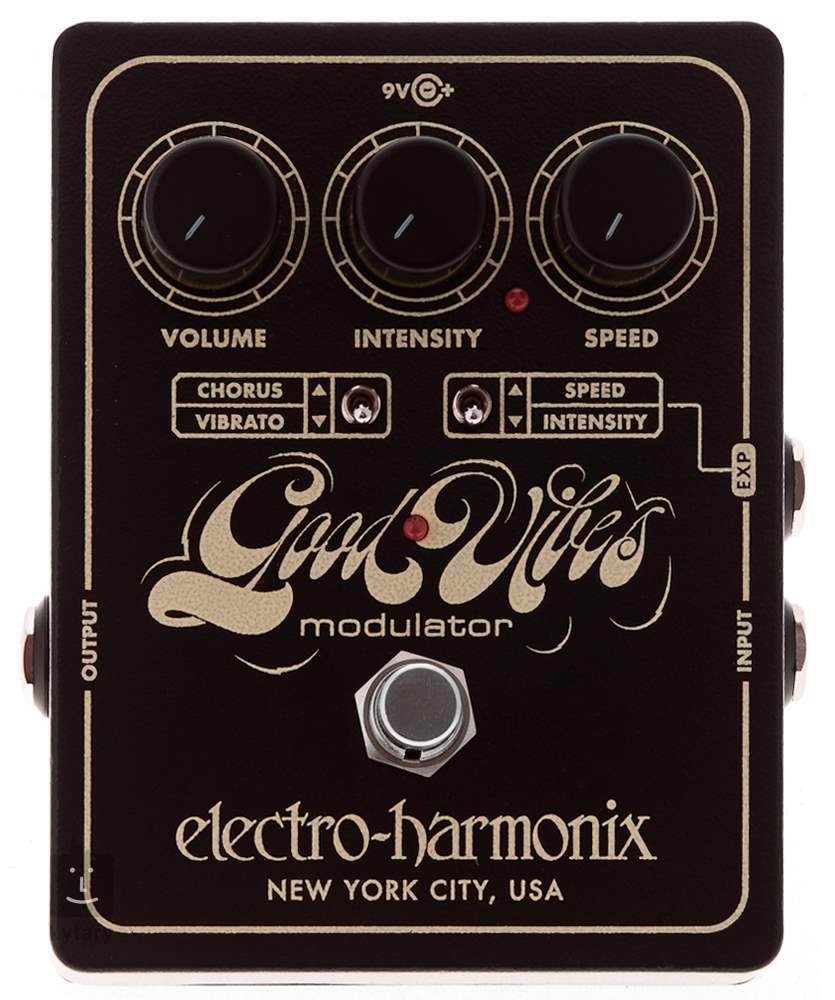 Pedálový efekt Good Vibes z dílen americké značky Electro Harmonix s sebou přináší zvuk slavného chorus/vibrato efektu ze 60. let. Podobně jako originální Uni-Vibe využívá fotočlánků k vytvoření vřelých rozechvěných pulsujících zvuků chorus a vibrato efektů. Vnitřně zesílené napětí poskytuje zvuku dostatečný headroom odpovídající požadavkům muzikantů v 21. století.