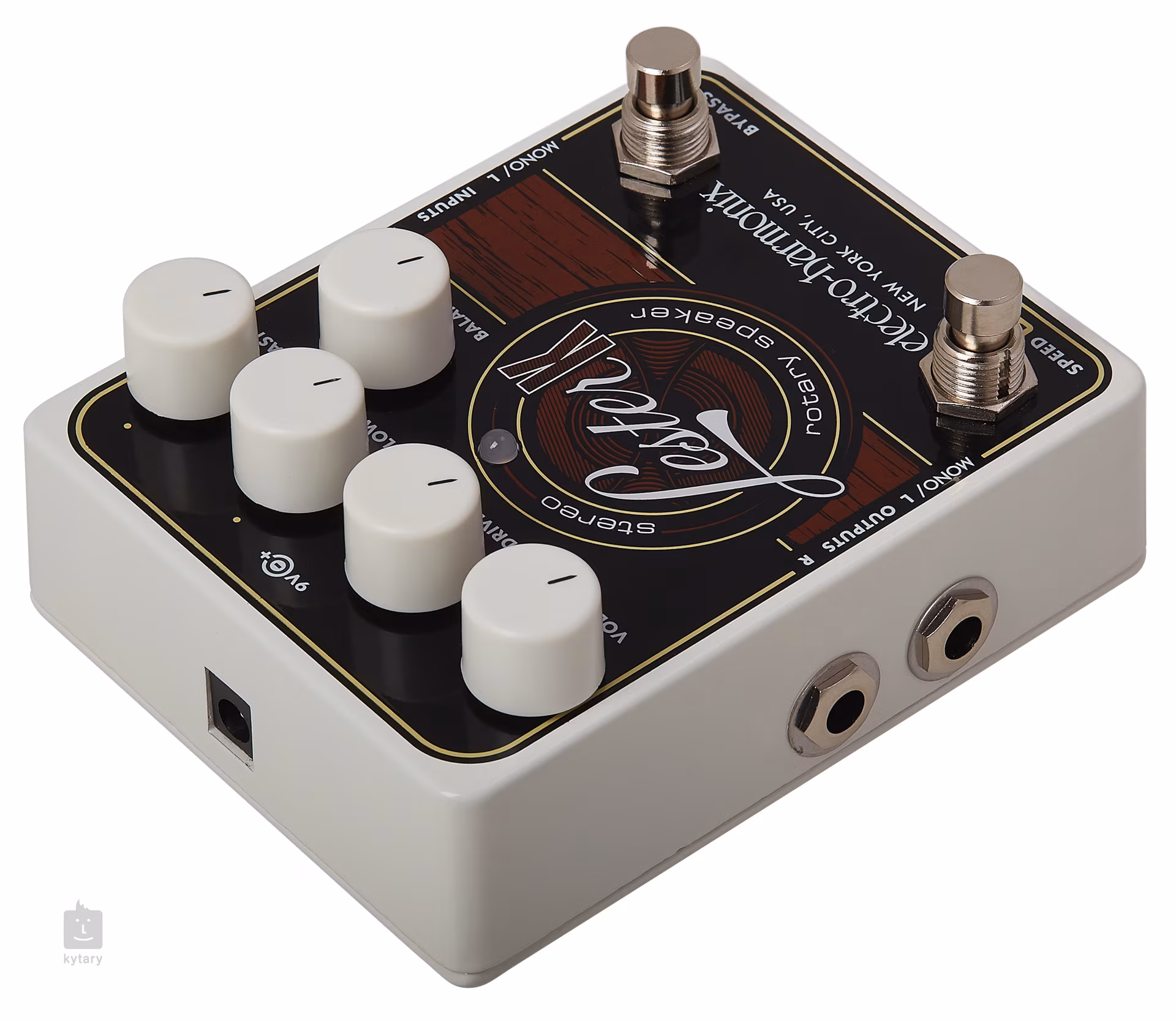 Lester K od americké značky Electro-Harmonix (EHX) je emulátor legendárních reprosoustav Leslie s rotujícími zvukovody ve formě kompaktního pedálu. Model K je primárně určen pro klávesové nástroje, protože oproti verzi G postrádá zabudovaný kompresor. Nicméně pokud již nějaký pedálový kompresor vlastníte, potom není důvod, proč Lester K nepoužívat s kytarou. Jednoduše tak můžete mít kdykoliv s sebou legendární tremolo zvuk sedmdesátikilových Leslie reprosoustav, které nerozlučně doprovázely zvuk varhan Hammond.