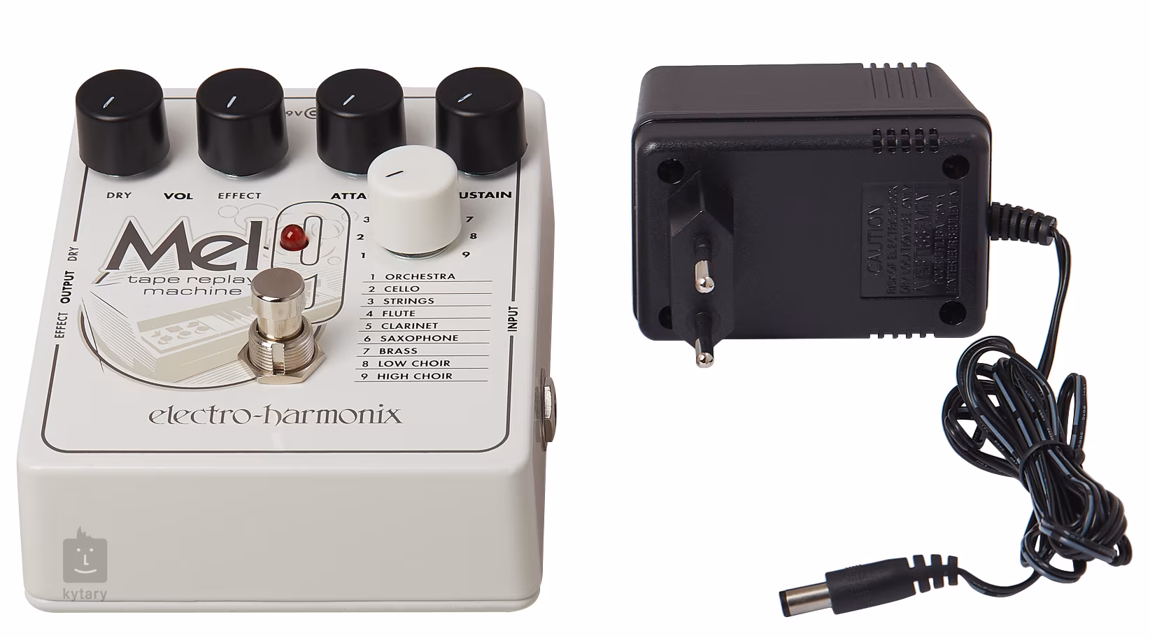 Mel9 Tape Replay Machine je pedálový efekt od značky EHX, který simuluje zvuk mellotronu, tj. jednoho z prvních klávesových samplerů vytvořeného začátkem šedesátých let minulého století. Nabízí devět zvukových modů (bank), konkrétně Orchestra, Cello, Strings, Flute, Clarinet, Saxophone, Brass, Low Choir a High Choir, s odpovídajícím autentickým zvukovým charakterem mellotronu.