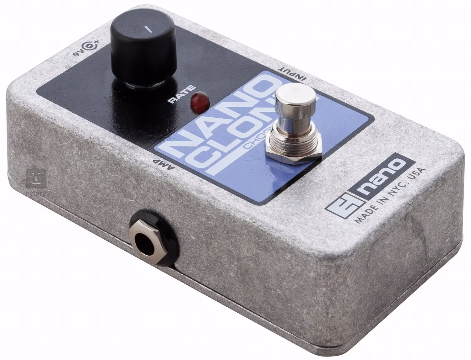 EHX Nano Clone je klasický analogový chorus v minimalistickém designu, který vám nabídne tradiční podoby chorus efektu, tj. vřelý plný zvuk s efektem jemného zvukového chvění (zdvojení kytarových linek) i výraznější „seasick“ modulace s kovovějším zabarvením efektu. Jediným ovladačem pedálu určíte rychlost efektové modulace. Nic pro „tweakery“, ale pokud hledáte maximálně jednoduchý praktický a spolehlivý chorus v klasické podobě, potom je jistě dobrou volbou.
