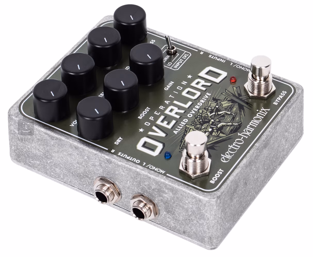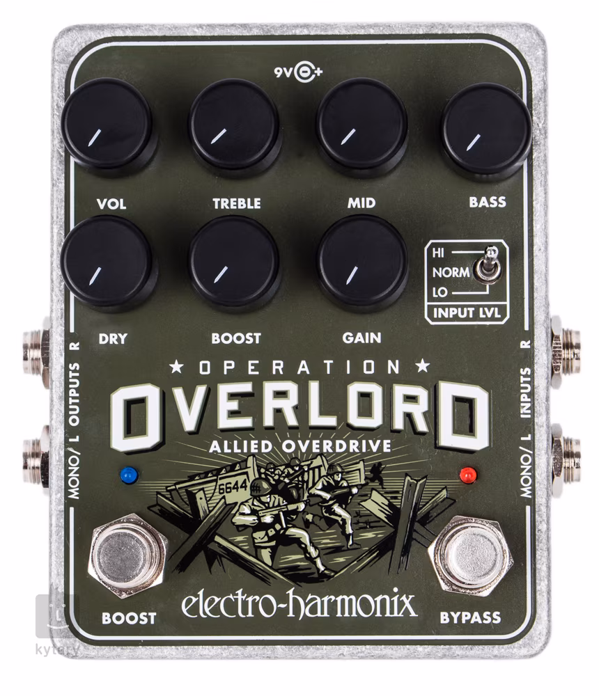 Operation Overlord Allied Overdrive z dílen americké značky Electro Harmonix přináší design s válečnou tématikou a téma spojenectví. V tomto případě nespojují síly vojska, ale hudební nástroje. Jde o univerzální dvoukanálový overdrive/distortion s nastavitelnou sílou vstupního signálu, který si tak dobře porozumí s klávesami, kytarou, baskytarou nebo jakýmkoliv jiným elektrickým nástrojem.