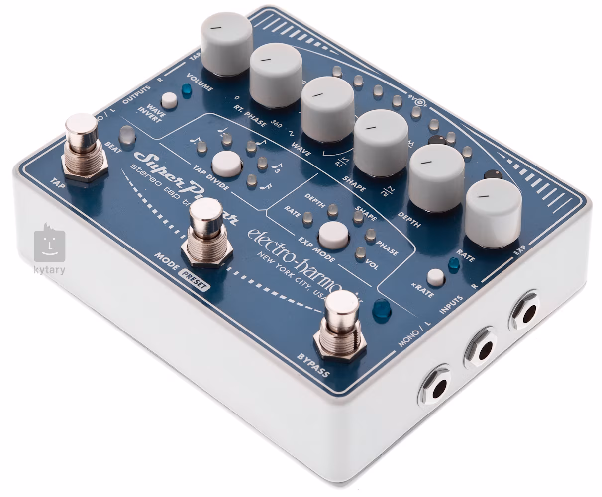 EHX Super Pulsar Stereo Tap Tremolo je ultra nadupaný analogový pedálový efekt, který vám poskytne nekonečnou škálu bohatých pulzujících zvuků tremolo efektu. Hlavní panel nabízí množství ovladačů a blikajících LED – na své si tak přijdou „tweakeři“, nicméně ovládání není až tak velká detektivka, jak by se mohlo jevit.