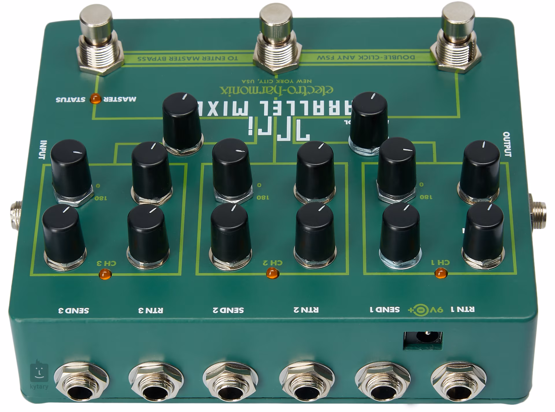 Kytarová krabička Tri Parallel Mixer od společnosti Electro Harmonix je kompaktní mix v pedálovém formátu, který vám poskytne celou řadu různých využití. Můžete do něj zapojit a mixovat tři různé efektové smyčky, propojit kytaru nebo jiný nástroj se třemi různými aparáty, případně do krabičky zapojit tři různé nástroje a přepínat mezi nimi, nebo jejich zvuk libovolně mixovat. Krabička umožňuje také paralelní zapojené jednotlivých efektů, což vám umožní dosáhnout jiného zvuku, než jaký nabízí klasické sériové zapojení. Tri Parallel Mixer je tak vhodným pomocníkem nejen pro studiové nahrávání, ale také pro živé vystupování.