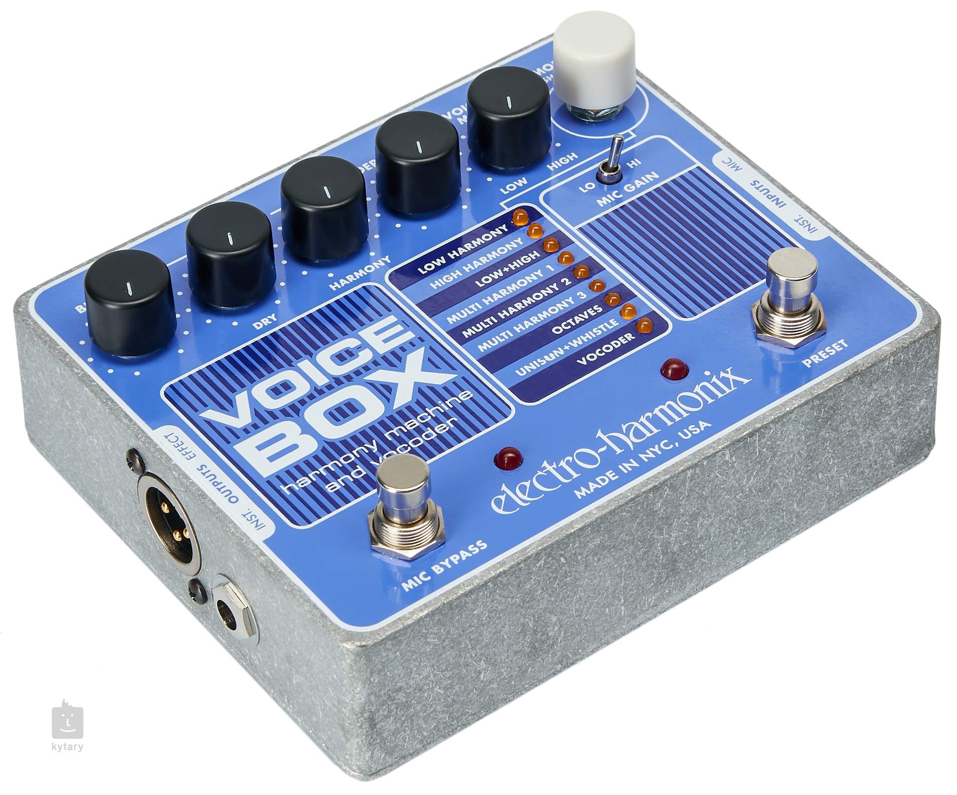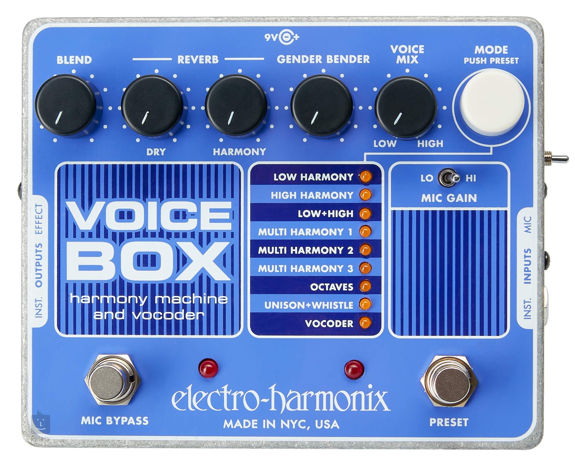 Voice-Box je všestranný a snadno uživatelný hlasový syntezátor, harmonizér a vokodér, který je díky velikosti běžné efektové krabičky výrazně praktičtější než velká a komplikovaná racková zařízení. Přitom umí to samé a i něco navíc. Díky Voice-Boxu můžete generovat harmonie k Vašemu zpěvu, simulovat robotický hlas nebo jinak upravovat Váš zpěv.