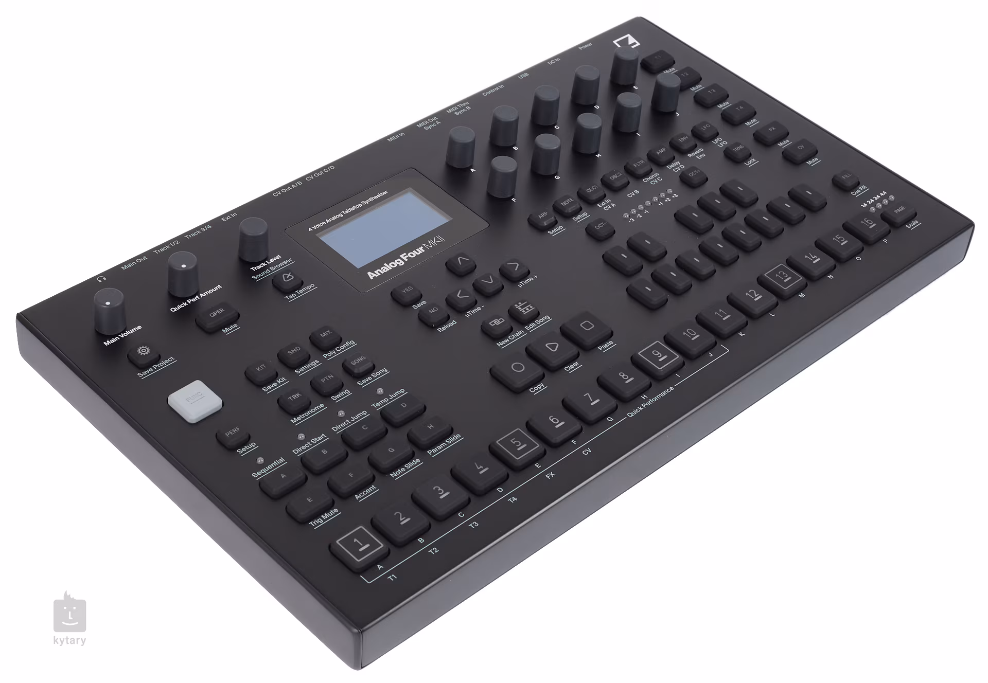 Elektron Analog Four nabízí čtyři hlasy analogové polyfonie a přesnost digitálního procesování. Dva analogové oscilátory s LFO, obálkami, variabilním filtrem a efekty jsou schopné jakéhokoliv zvuku, kterému můžete dát řád pomocí zabudovaného sekvencéru. Kromě toho se na zadním panelu nachází CV/Gate výstupy pro propojení s vintage nebo modulárními syntezátory. Samozřejmostí je MIDI a USB konektor, Analog Four lze také používat jako plug-in ve vašem oblíbeném DAW díky softwaru Overbridge.