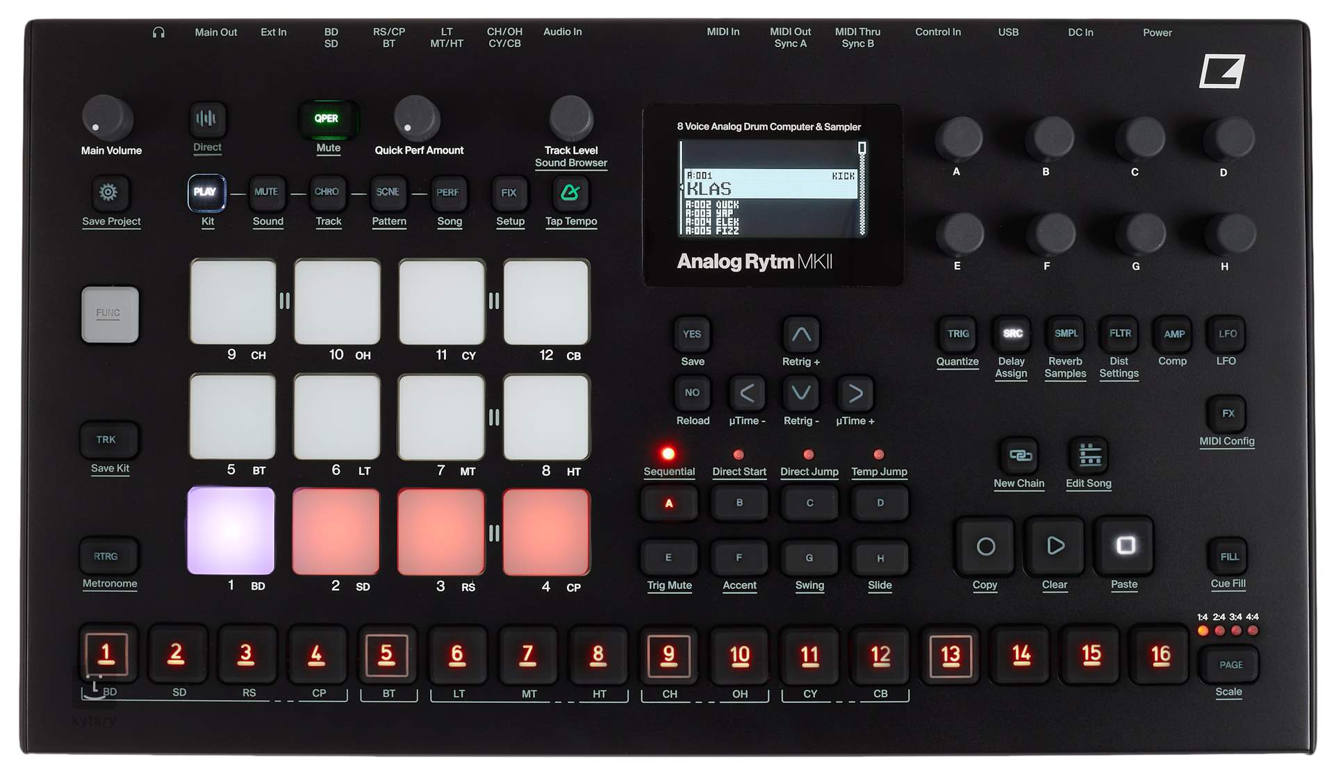 Analog Rytm MKII je vylepšenou verzí svého předchůdce obohacený o možnost samplování a mono výstupy pro všech 8 hlasů. Ve druhé generaci tohoto analogového grooveboxu najdete následující vylepšení: