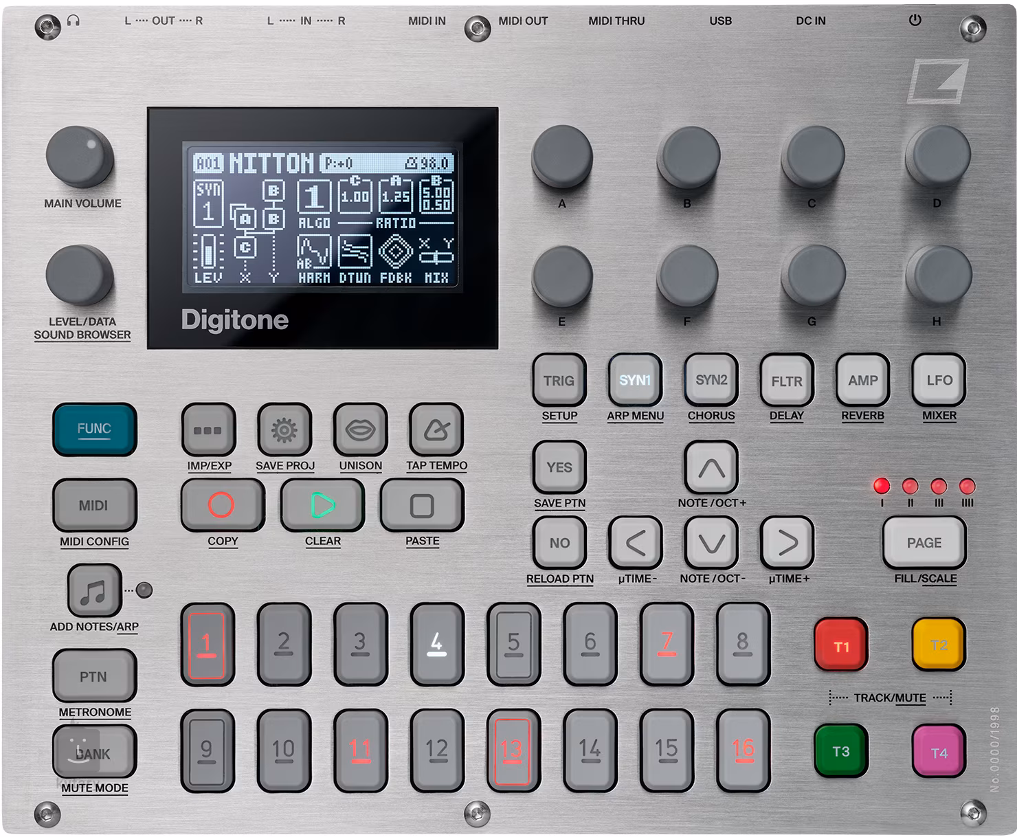 Elektron Digitone je digitální syntezátor s osmi hlasy polyfonie, který v sobě kombinuje téměř bezbřehé možnosti tvorby zvuku pomocí FM syntézy se signálovou cestou substraktivní syntézy známou z analogu. Nechybí velmi flexibilní sekvencer a efektová jednotka. To vše ve velmi kompaktním balení a s intuitivním ovládáním.