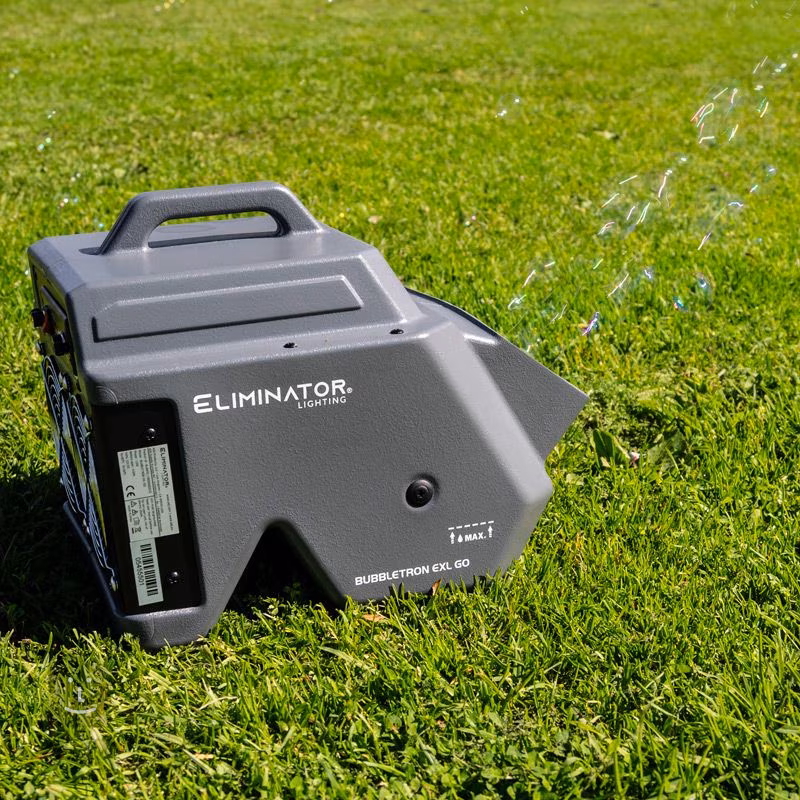 Bubbletron EXL GO od společnosti Eliminator je kompaktní výrobník bublin poháněný bateriemi, který vám poskytne nevídanou flexibilitu a nezávislost. Vytvářejte bubliny kdekoliv, ať už jste uprostřed pole, na střeše mrakodrapu nebo třeba na chatě bez elektřiny.