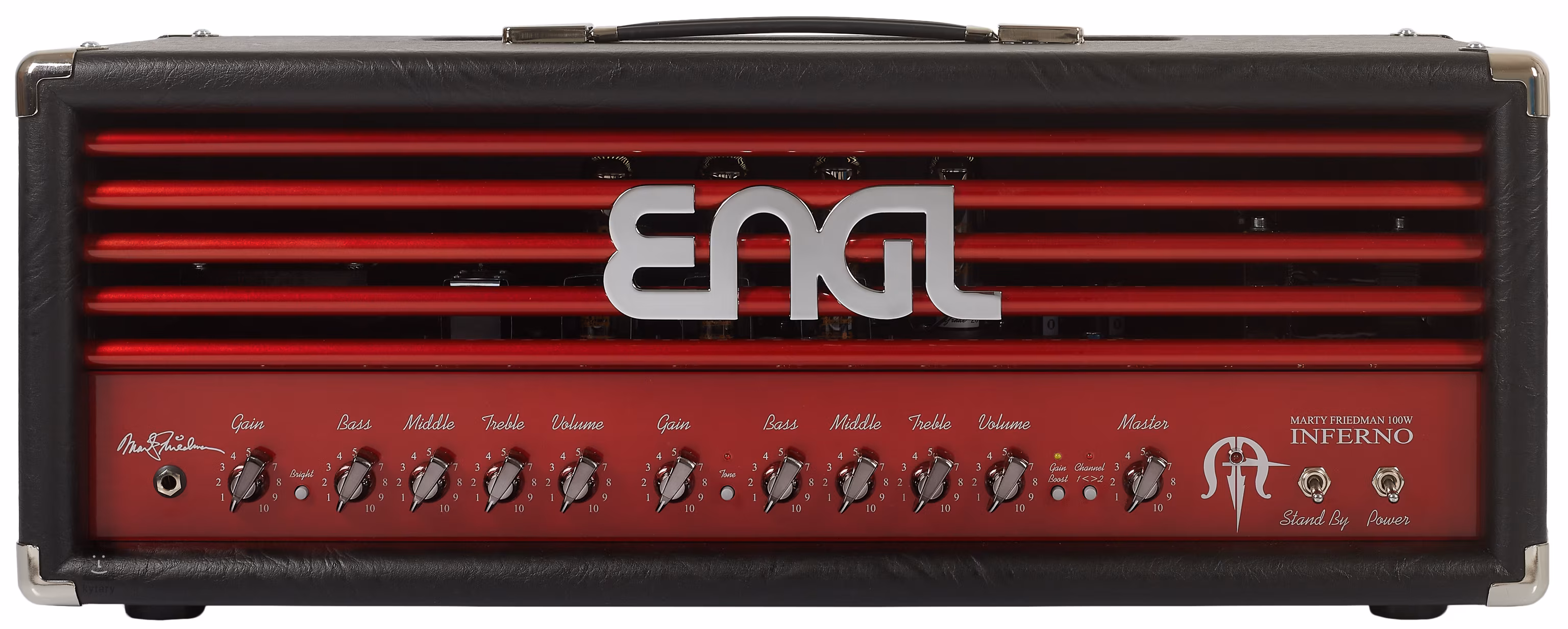 Engl E766 Marty Friedman Inferno je 100 wattový dvoukanálový celolampový zesilovač se čtyřmi elektronkami ECC83 v předzesilovači a čtyřmi EL34 koncovými lampami.