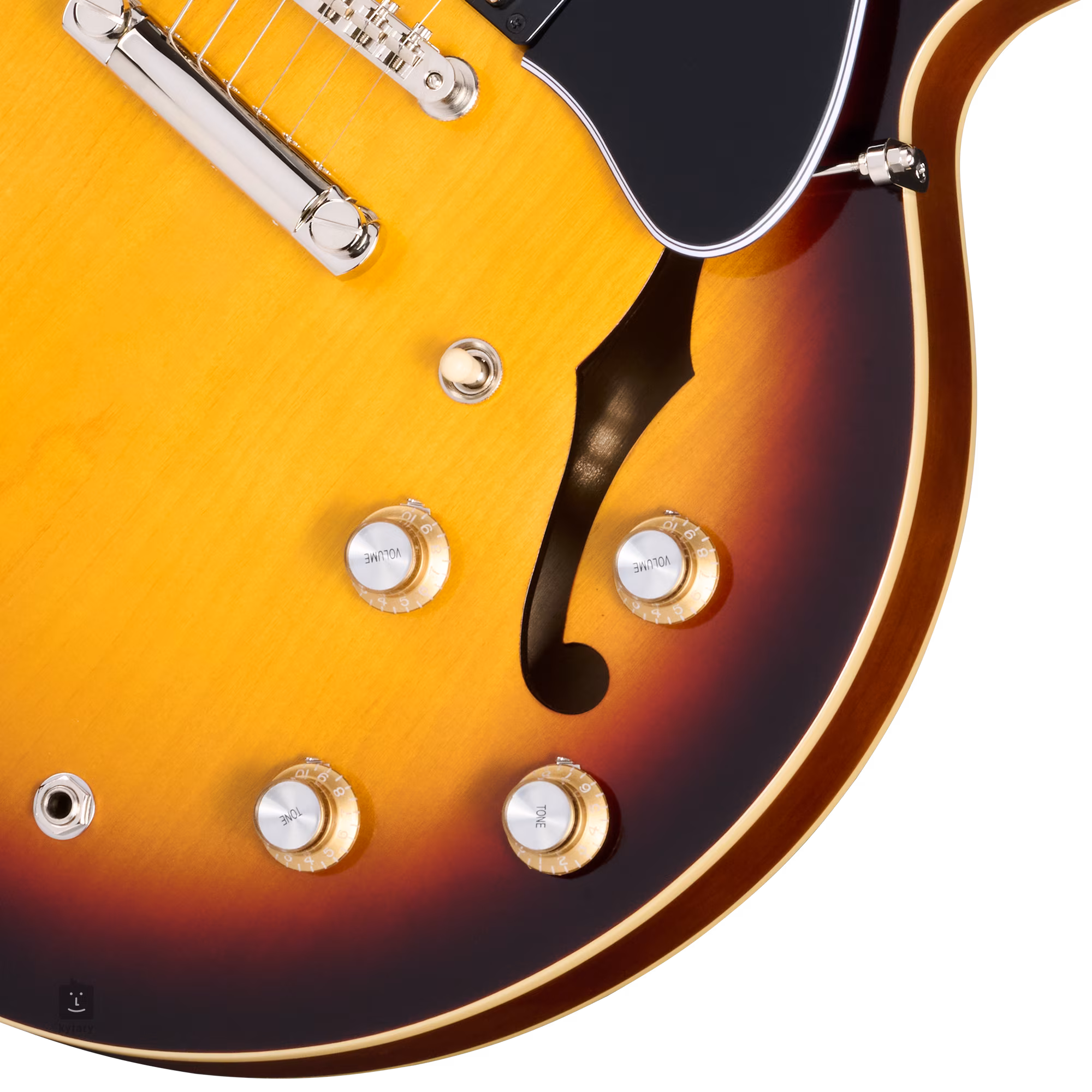 Dva v USA vyrobené nevoskované humbuckery Gibson Custombucker s Alnico 3 magnety poskytují kytaře vřelý autentický zvuk PAF snímačů, který oceníte v jazzu, rocku, blues, country a dalších hudebních stylech. Snímače jsou ručně pájené k potenciometrům hlasitosti a tónové clony. Struny jsou přes nultý pražec Graphtech uchyceny v ladicích mechanikách Epiphone Deluxe a ABR-1 TOM kobylce a hliníkovém struníku. Stylové zpracování podtrhuje perleťové (mother-of-pearl) firemní logo a inlay na hlavě kytary v tradičním “open book” designu, černý pětivrstvý pickguard v ES-335 tvaru a niklový hardware.