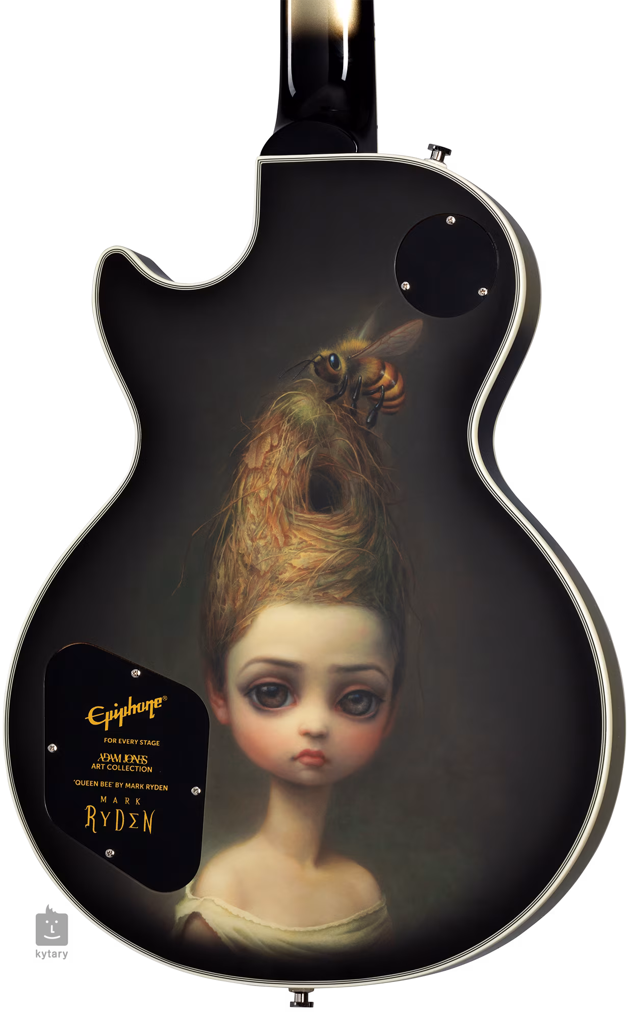 Mahagonové tělo s javorovým topem elektrické kytary Adam Jones Les Paul Custom Art Collection: Mark Ryden’s “Queen Bee" zdobí lesklý finiš Silverburst a dílo “Queen Bee" amerického malíře Marka Rydena, jehož práce můžete znát i z obalů nahrávek slavných kapel a interpretů z 80. a 90. let (Michael Jackson, RHCP, Aerosmith). Ke krku ze tří kusů javoru je přilepen ebenový hmatník osazený dvaadvaceti pražci. Orientaci na hmatníku usnadňují polohové bloky.