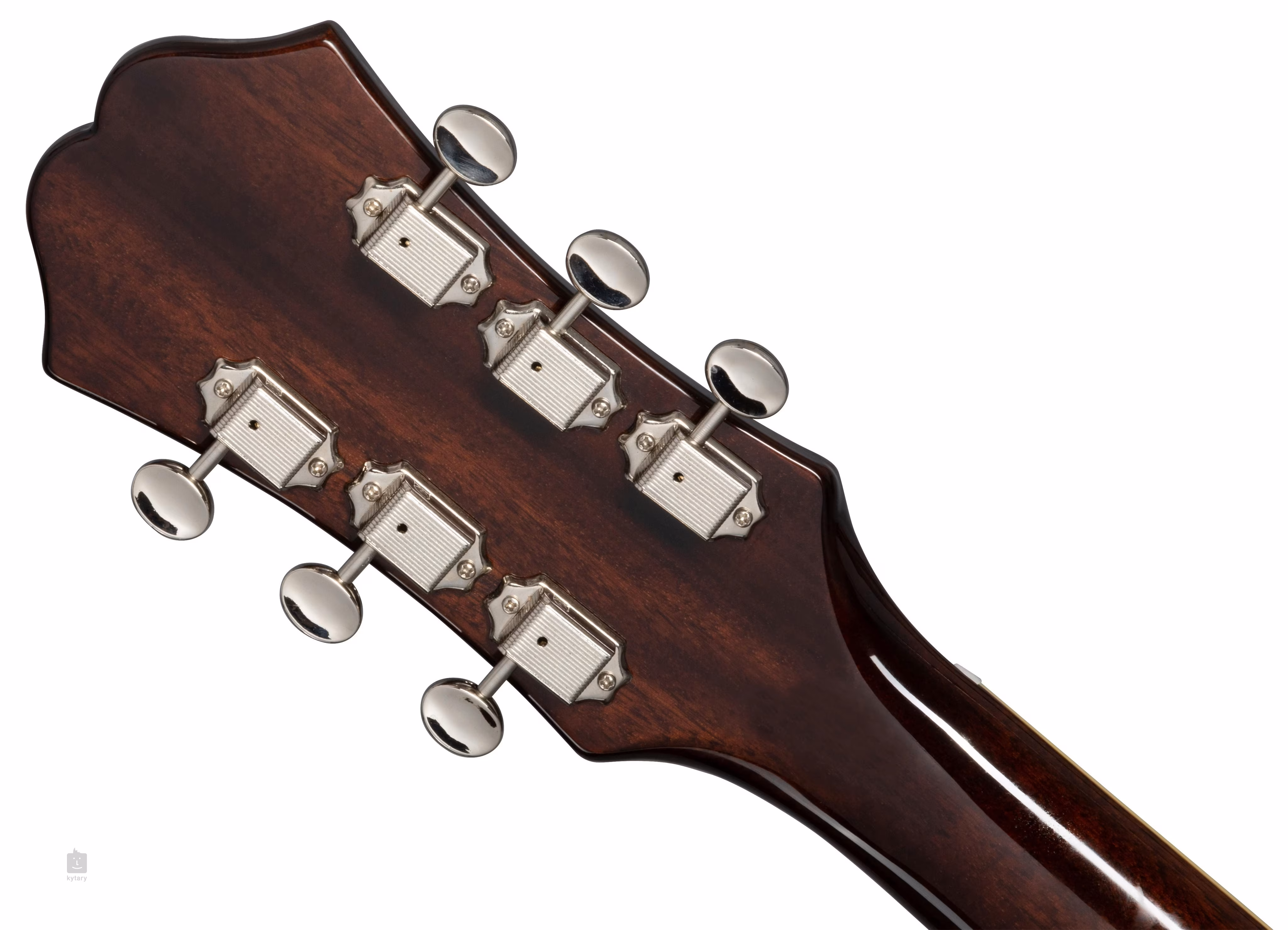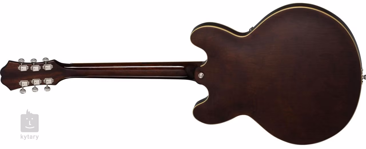Levoruký model Casino LH Vintage Sunburst nabízí úzké “thinline” lubové tělo zhotovené z vrstveného javoru. K mahagonovému krku s příjemným profilem “Slim Taper C” je přilepen hmatník z fíkovníku osazený dvaadvaceti pražci velikosti Medium Jumbo. Orientaci na hmatníku usnadňují polohové bloky.
