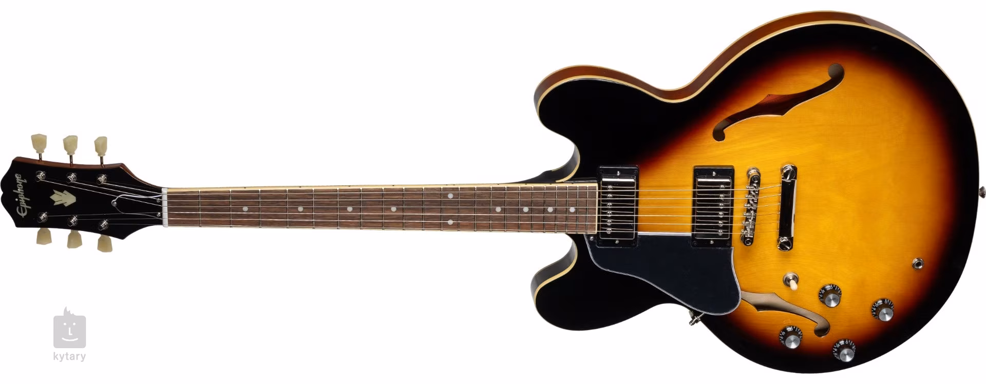 Pololubové elektrické kytary Epiphone ES-335 jsou cenově dostupnějšími kopiemi kytar Gibson ES-335 uvedených na trh již v roce 1958. Tělo levorukého modelu ES-335 LH Vintage Sunburst je zhotoveno z vrstveného javoru. Javorový středový blok zvyšuje pevnost pololubové konstrukce a odolnost proti “vazbení”. K mahagonovému krku je přilepen hmatník z fíkovníku osazený dvaadvaceti pražci velikosti Medium Jumbo. Orientaci na hmatníku usnadňují poziční tečky.