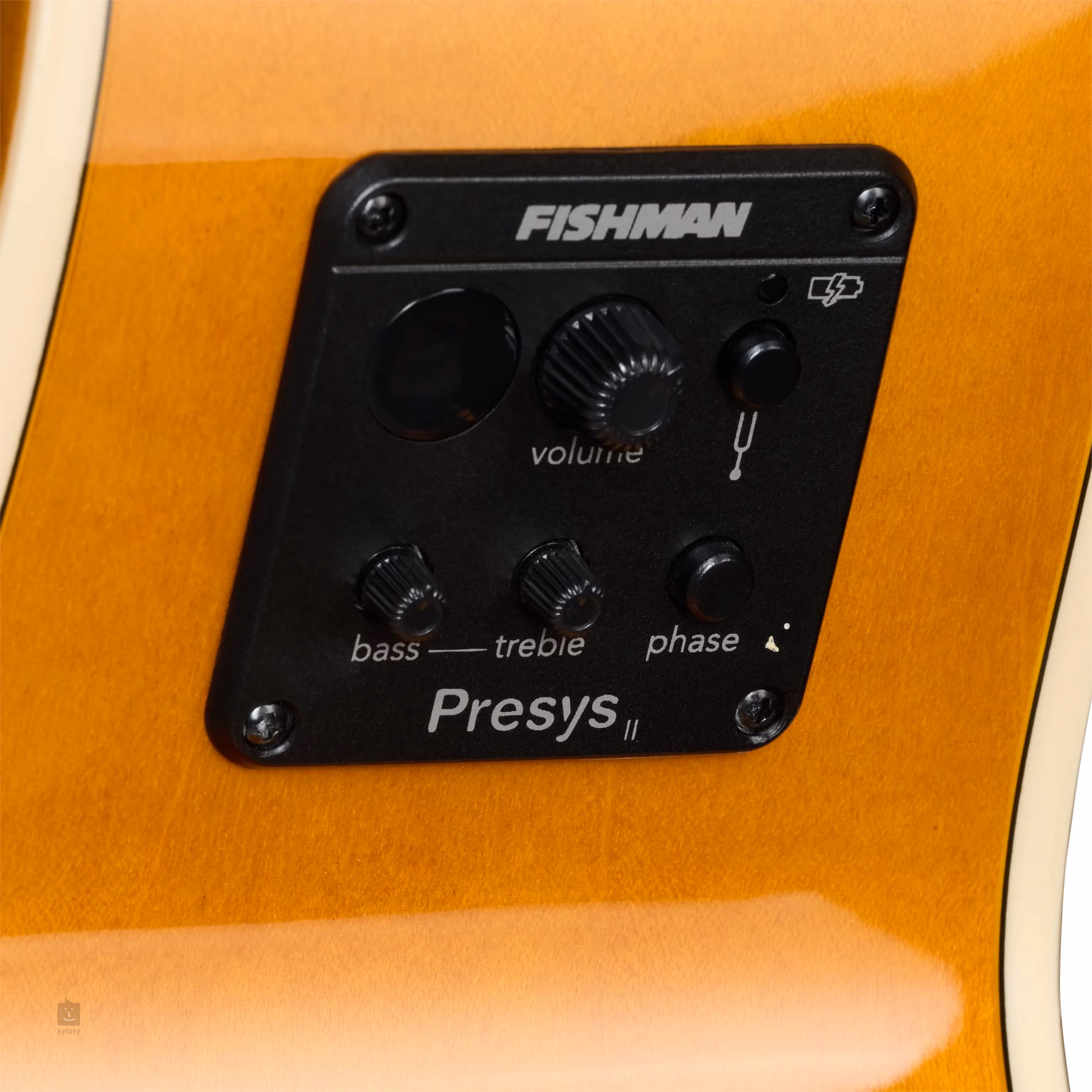 Možnost ozvučení nabízí aktivní elektronika Fishman Presys II s dvoupásmovým ekvalizérem, invertorem fáze a zabudovanou ladičkou v lubu kytary a podkobylkový snímač Fishman S-Core.
