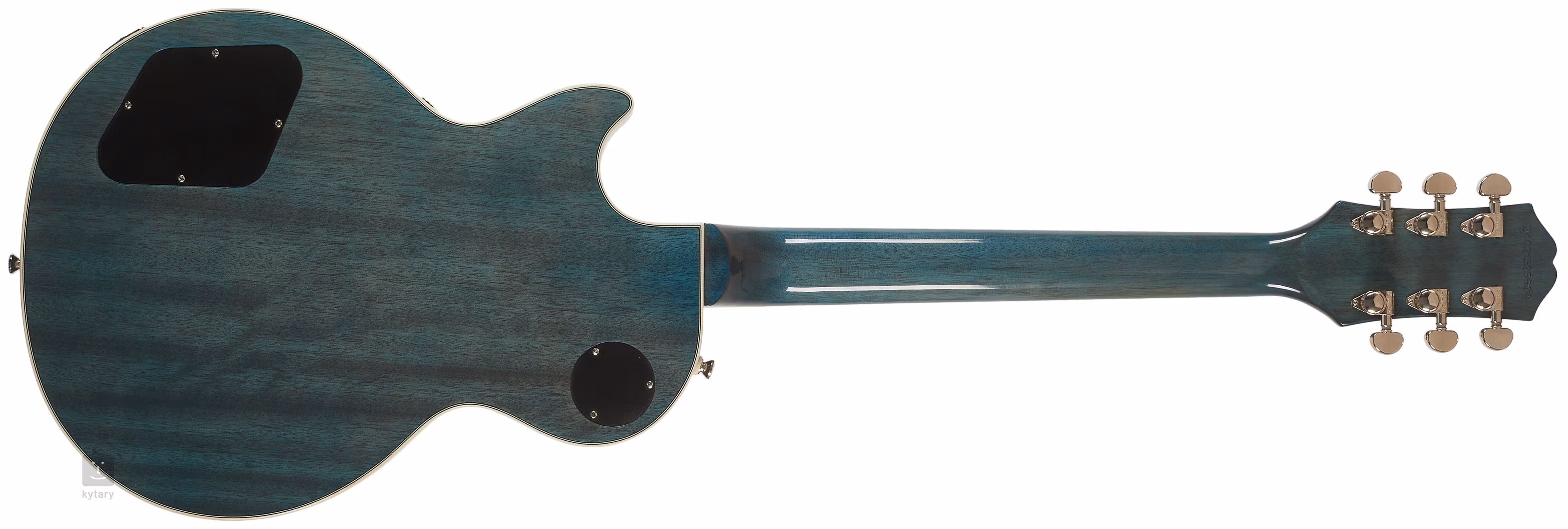 Elektrické kytary Epiphone Les Paul představují finančně dostupnější alternativu originálů s logem Gibson. A to platí i v případě modelu Les Paul Custom Figured Transparent Blue z limitované edice značky.