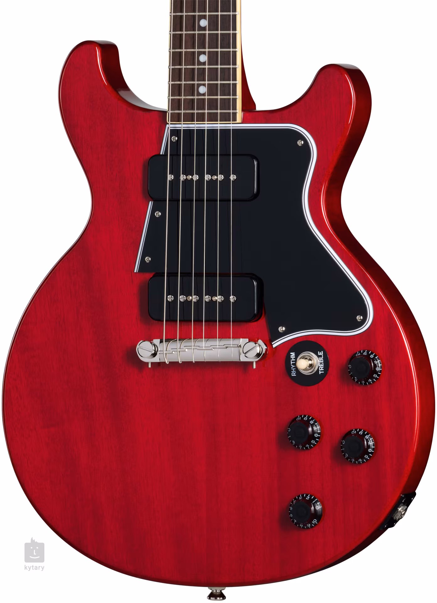 Elektrické kytary typu Les Paul firmy Epiphone představují již několik desetiletí finančně dostupnější alternativu originálů s logem Gibson. Model Les Paul Special Double Cut Cherry Red oprašuje autentický double-cut design Les Paul Special ze začátku 60. let se vším co k němu patří.