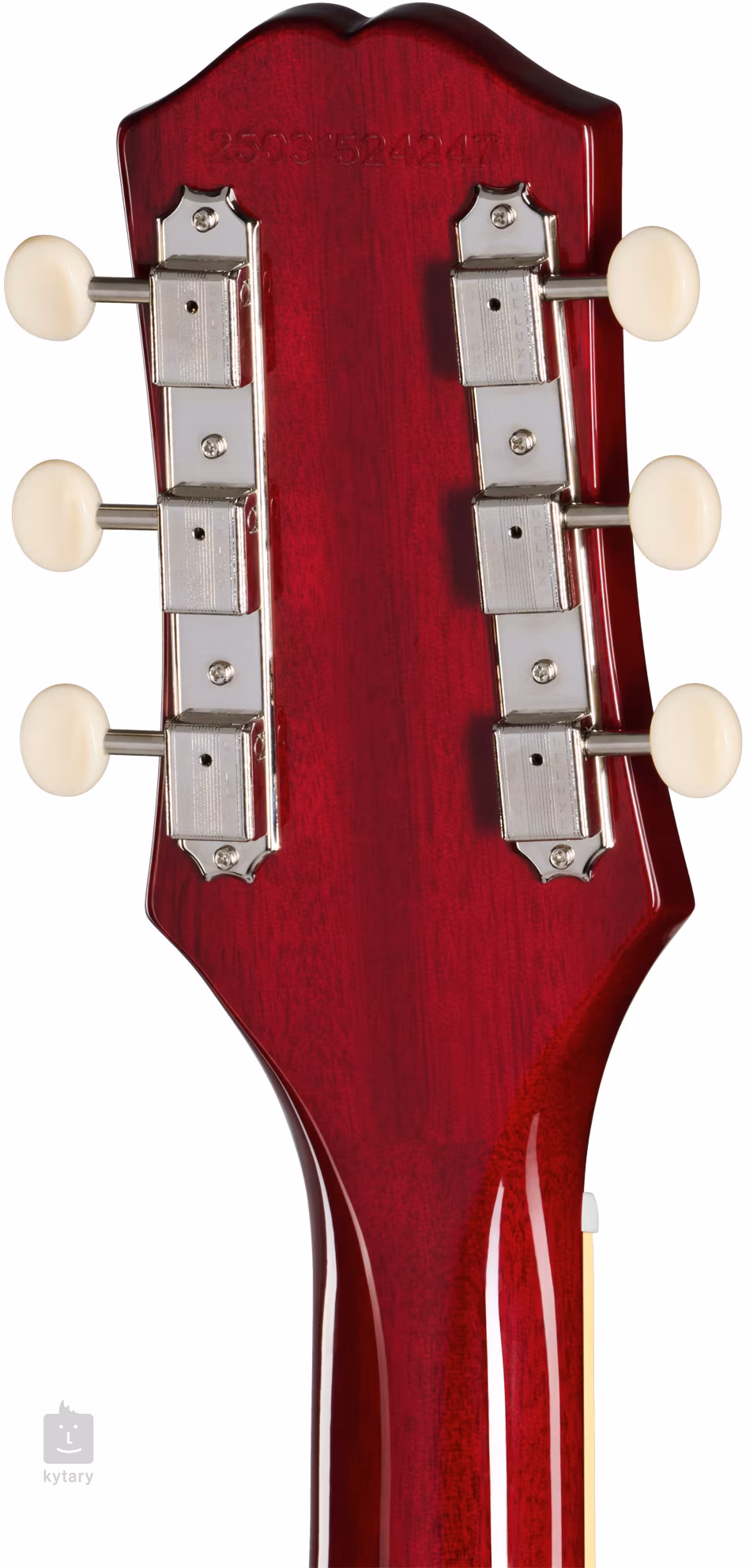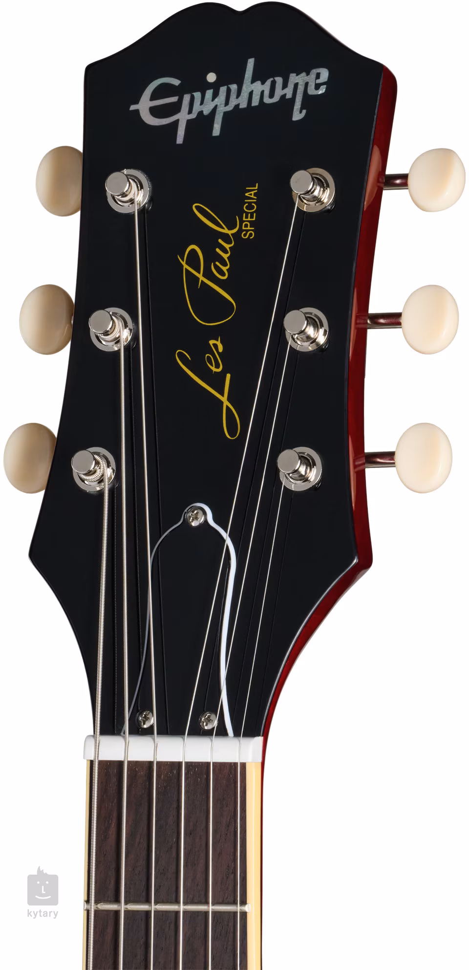 Dvojice Epiphone P-90 PRO snímačů poskytuje kytaře jak krásně čistý zvuk, tak i v případě potřeby žhavé rockové zkreslení. Charakter zvuku upravíte pomocí potenciometrů hlasitosti, tónové clony a třípolohového přepínače snímačů. Struny jsou přes nultý pražec z materiálu Graphtech uchyceny ve firemních mechanikách s kolíčky z imitace slonoviny a wraparound kobylce. Stylový design podtrhuje lemovka hmatníku, pětivrstvý černý pickguard a perleťové firemní logo na hlavici (Mother of Pearl).