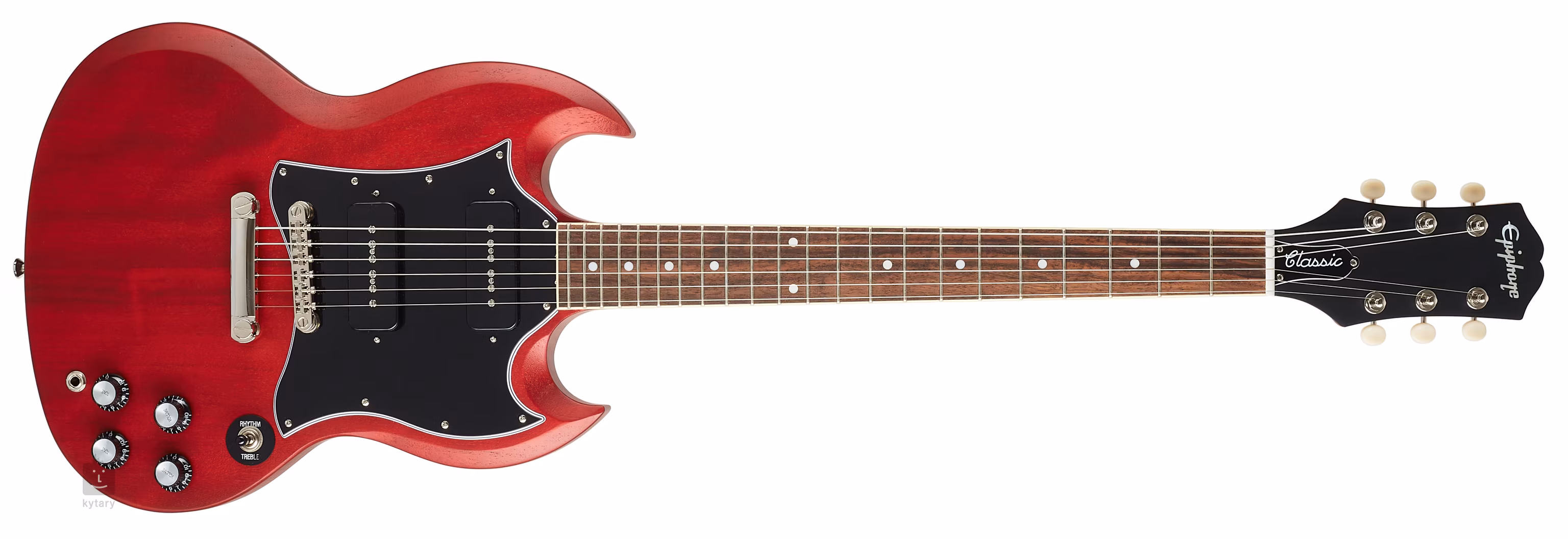 Elektrické kytary v double-cut designu typu SG od firmy Epiphone představují finančně dostupnější alternativu originálů s logem Gibson. Konkrétně řada SG Classic Worn P-90s nabízí kytary s finišem s jemnými prvky patiny. Tyto nástroje vám tak na první dobrou padnou jako dobře obnošené džíny.