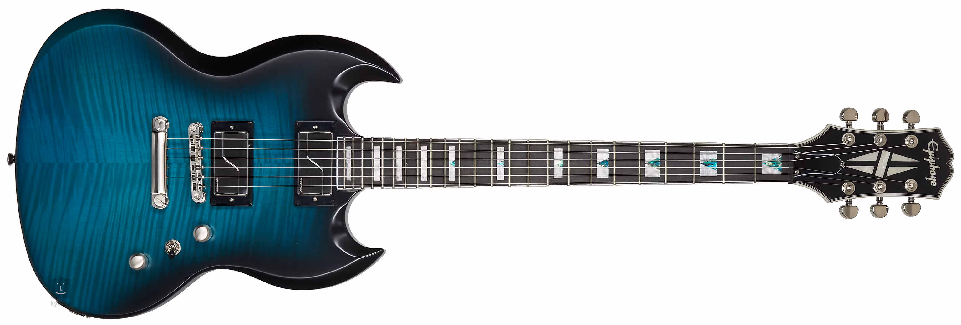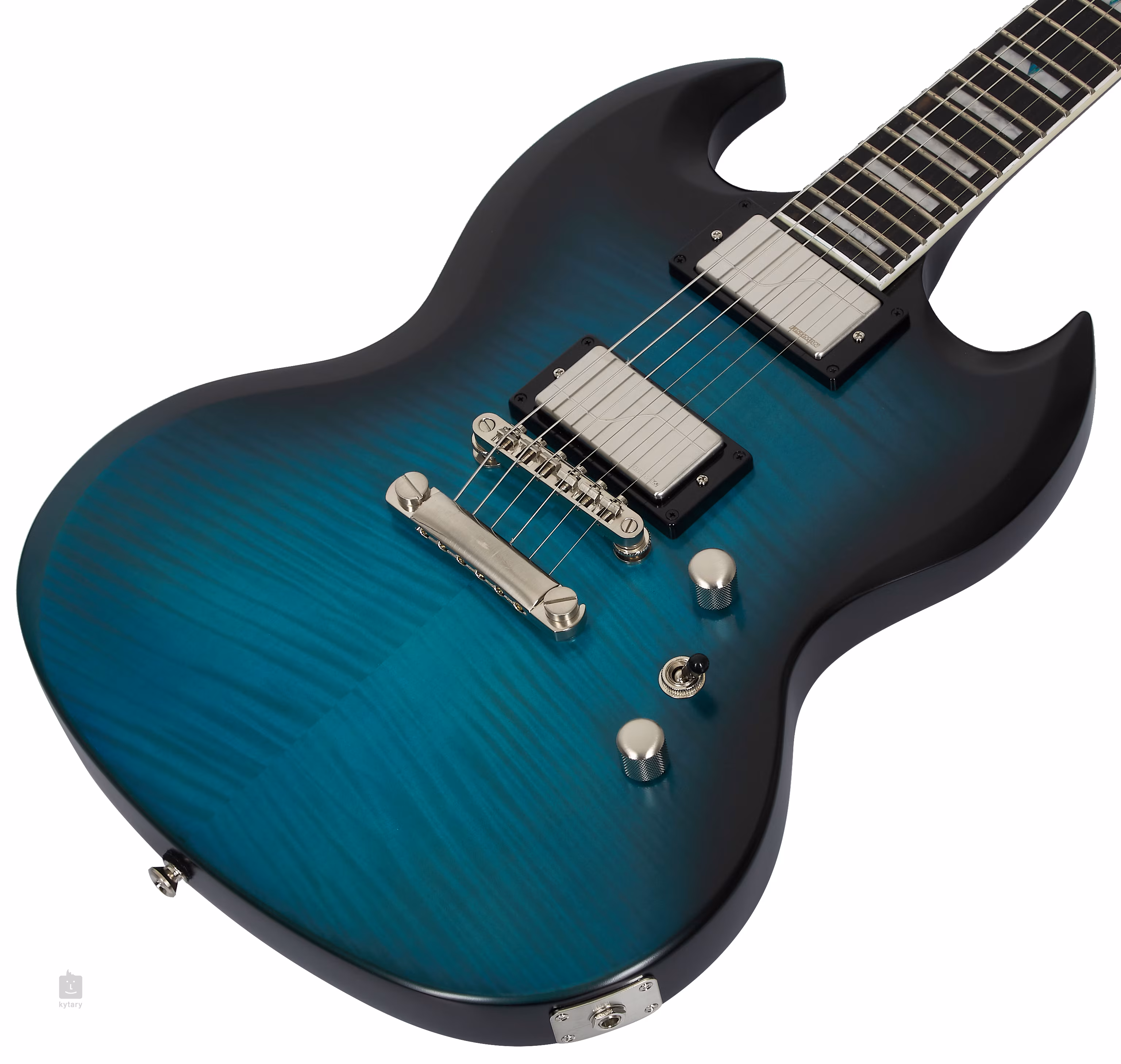 Mahagonové tělo a javorový top (13 mm) modelu SG Prophecy Blue Tiger Aged Gloss zdobí efektní dýha z fládrovaného javoru. Asymetrický Slim Taper profil mahagonového krku poskytuje levé ruce potřebný komfort pro snadný a rychlý pohyb po celé ploše hmatníku. Samotný ebenový hmatník je osazen čtyřiadvaceti pražci velikosti Jumbo. Orientaci po ploše hmatníku usnadňují polohové bloky s vloženými kusy z pravé perleti (Abalone).