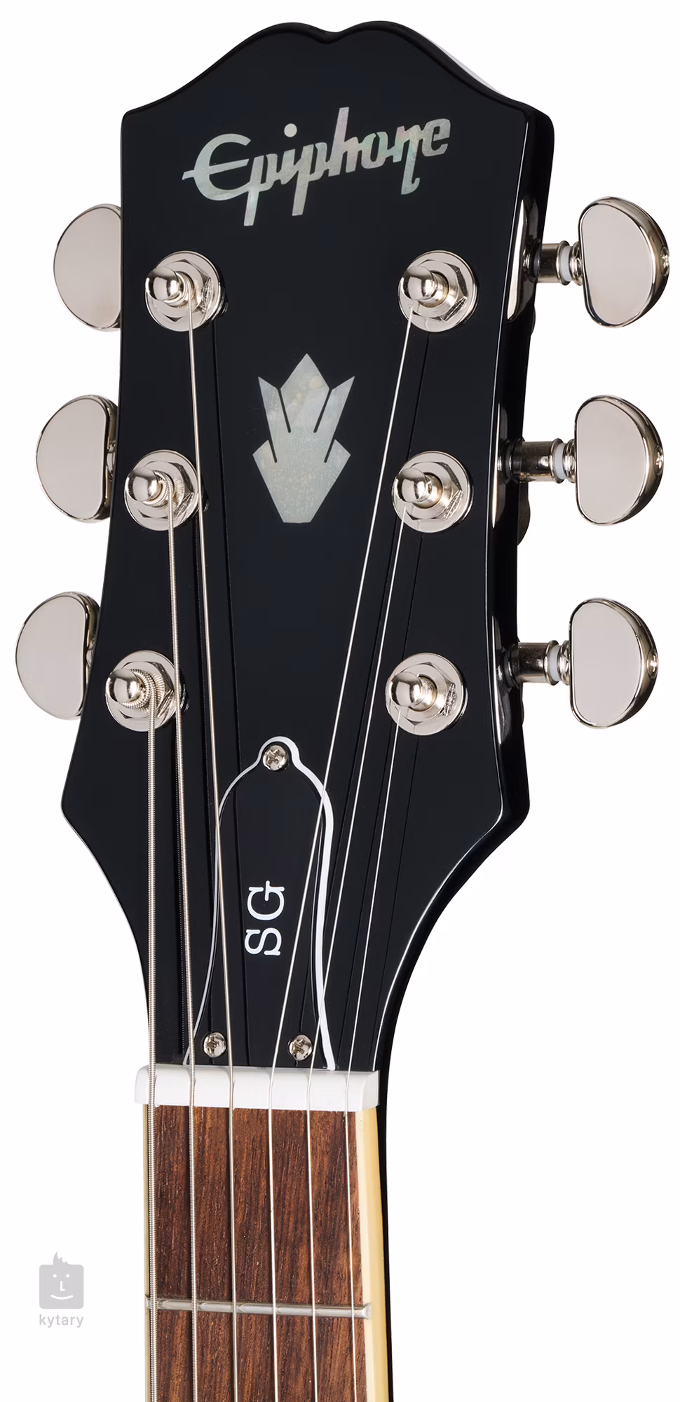 Struny jsou uchyceny v kvalitních ladicích mechanikách Grover Rotomatic a přes nastavitelnou kobylku LockTone TOM ve struníku. Stylový design podtrhuje černý “Batwing" style pickguard.