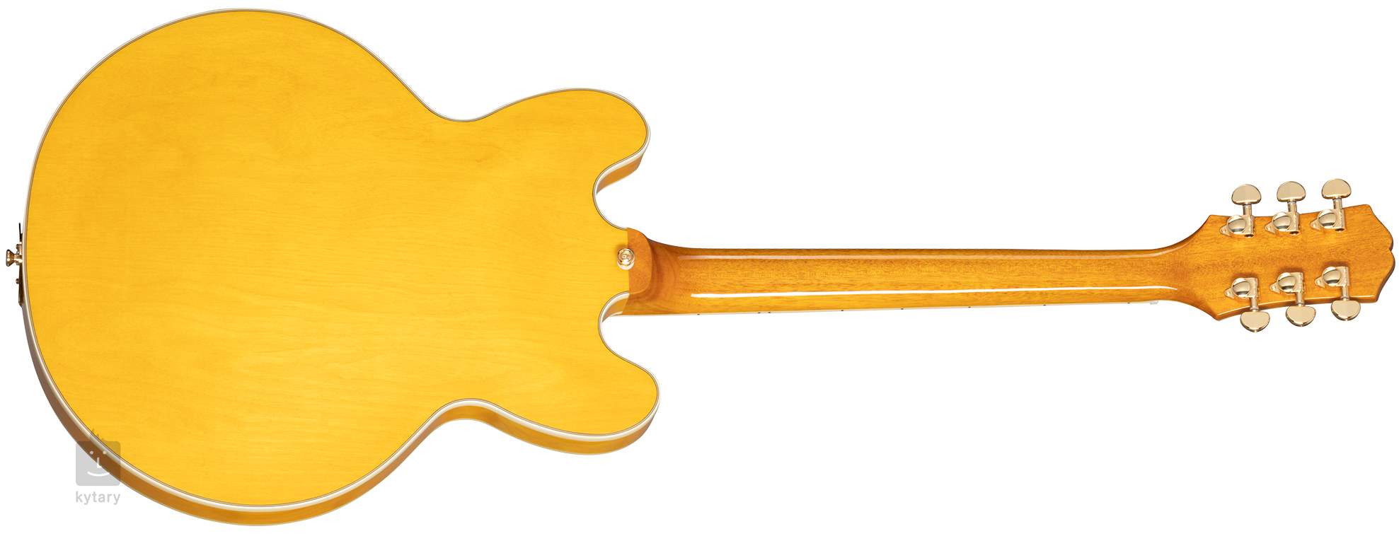 Pololubová elektrická kytara Epiphone Sheraton Natural nabízí užší “thinline” tělo zhotovené z vrstveného javoru. Javorový středový blok zvyšuje pevnost pololubové konstrukce a odolnost proti “vazbení”. K mahagonovému krku s příjemným profilem “Slim Taper C” je přilepen hmatník z fíkovníku osazený dvaadvaceti pražci velikosti Medium Jumbo. Orientaci na hmatníku usnadňují perleťové polohové bloky (Mother-of-Pearl, Abalone).