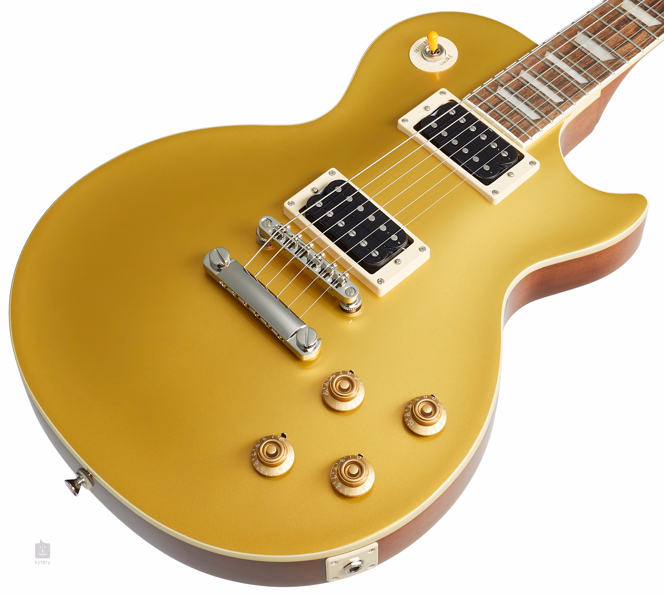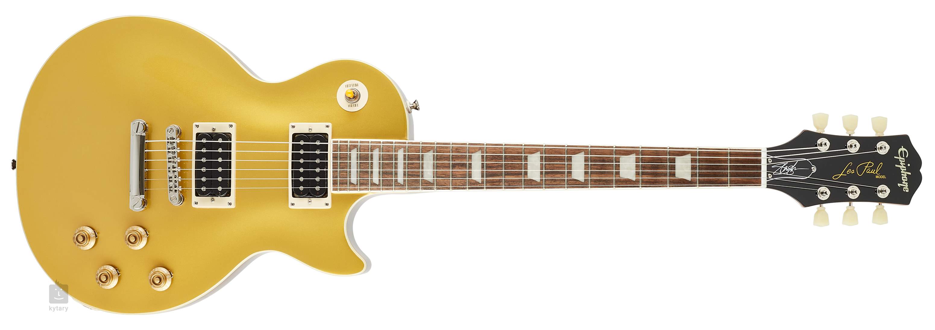Elektrická kytara Slash Les Paul Metallic Gold je součástí edice Slash Collection, která nabízí populární Slashovy modely kytar z jeho bohaté muzikantské kariéry v cenově dostupnějším Epiphone „Inspired by Gibson“ provedení.