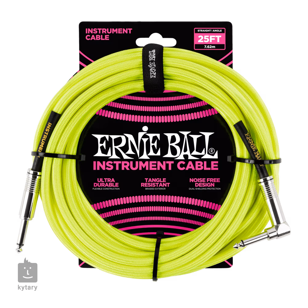 . Ernie Ball 25' Braided Cable Neon Yellow