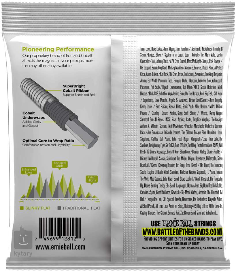 Americká firma Ernie Ball patří již řadu desetiletí mezi přední výrobce kytarových a baskytarových strun. Pro jejich výrobu používá ty nejmodernější technologie a kvalitní materiály. Reaguje tak na současné požadavky a nároky i těch nejnáročnějších muzikantů. Jejich unikátní zvuk je zachycen na nahrávkách osobností jako Paul McCartney, Tony Levin, Mark Hoppus, Mike Herrera, Johnny Christ, Dave La Rue, John Myung nebo Juan Alderete. Struny jsou vyráběny ve Spojených státech amerických.