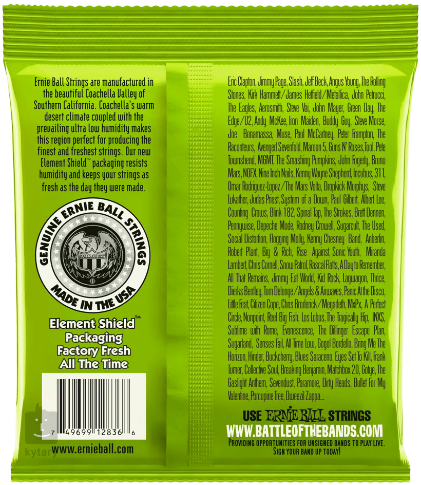 Americká firma Ernie Ball patří již řadu desetiletí mezi přední výrobce kytarových a baskytarových strun. Pro jejich výrobu používá ty nejmodernější technologie a kvalitní materiály. Reaguje tak na současné požadavky a nároky i těch nejnáročnějších muzikantů. Jejich unikátní zvuk je zachycen na nahrávkách osobností jako Paul McCartney, Tony Levin, Mark Hoppus, Mike Herrera, Johnny Christ, Dave La Rue, John Myung nebo Juan Alderete. Struny jsou vyráběny ve Spojených státech amerických.