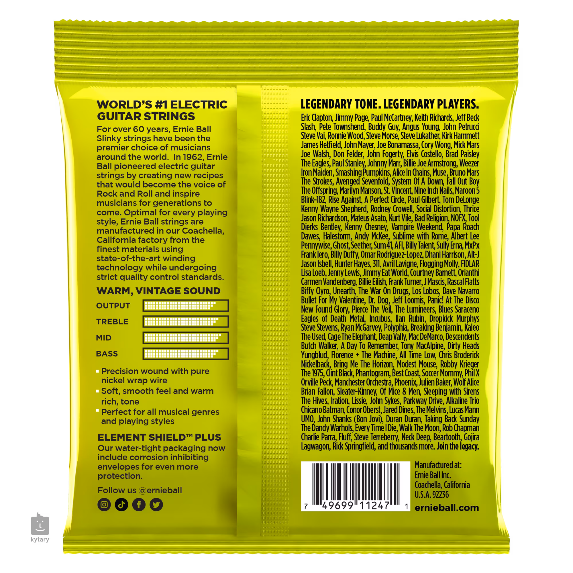 Struny pro elektrické kytary značky Ernie Ball z řady Classic Pure Nickel jsou vyrobeny z čistého niklu ovinutého kolem šestihranného ocelového jádra. Díky tomu mají teplejší tón, který byl typický pro struny vyráběné v 50. a 60. letech, kdy probíhal největší rokenrolový boom. Na své kytary je natahují ty největší hudební legendy jako například Jimmy Page, Eric Clapton nebo Paul McCartney. Pokud se toužíte vrátit do časů, kdy hudebními světu vládl Rock ‘N’ Roll, jste zde naprosto správně. V tomto balení najdete tři sady strun.