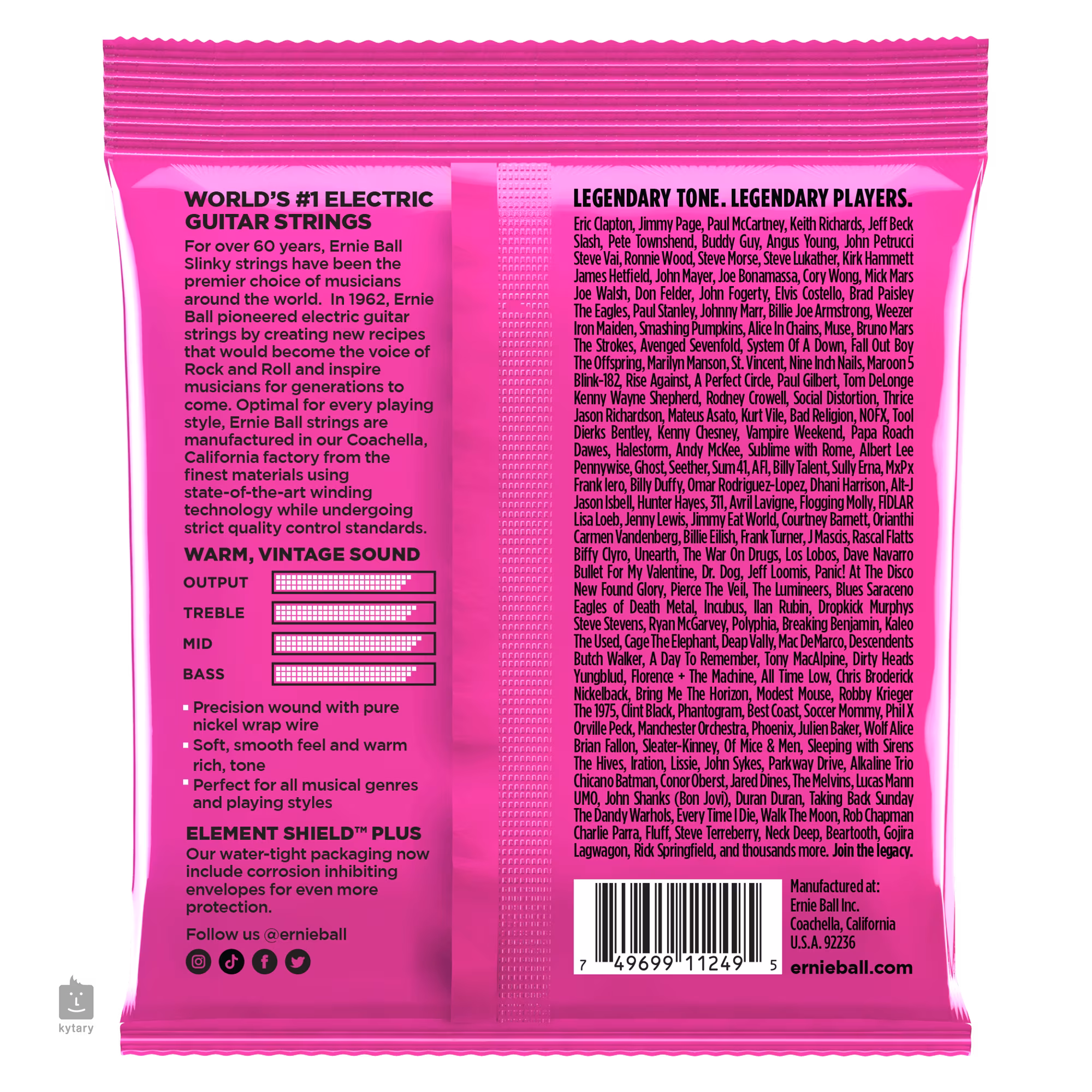 Struny pro elektrické kytary značky Ernie Ball z řady Classic Pure Nickel jsou vyrobeny z čistého niklu ovinutého kolem šestihranného ocelového jádra. Díky tomu mají teplejší tón, který byl typický pro struny vyráběné v 50. a 60. letech, kdy probíhal největší rokenrolový boom. Na své kytary je natahují ty největší hudební legendy jako například Jimmy Page, Eric Clapton nebo Paul McCartney. Pokud se toužíte vrátit do časů, kdy hudebními světu vládl Rock ‘N’ Roll, jste zde naprosto správně. V tomto balení najdete tři sady strun.