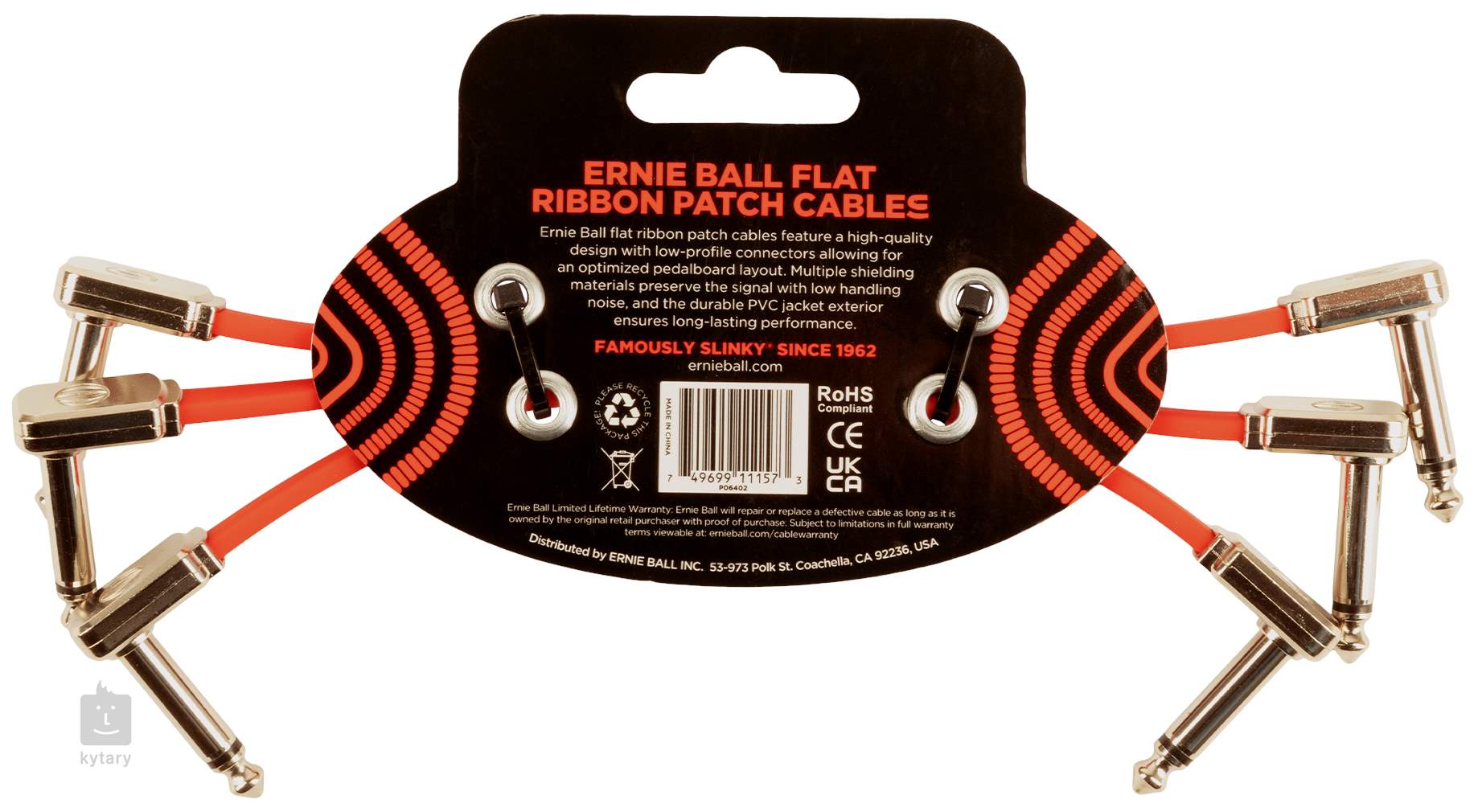 Při výrobě kabelů Ernie Ball byly použity ty nejkvalitnější komponenty k dosažení optimálního přenosu signálu a maximální životnosti. Dvojité vodiče se starají o věrnou reprodukci celého frekvenčního spektra a několikanásobné stínění udržuje signál bez nepříjemných ruchů a šumu. Vnější strana kabelu je potažena ochrannou vrstvou z PVC, kabel tedy odolá všem nástrahám na koncertech a ve zkušebnách. Balení obsahuje tři kabely.