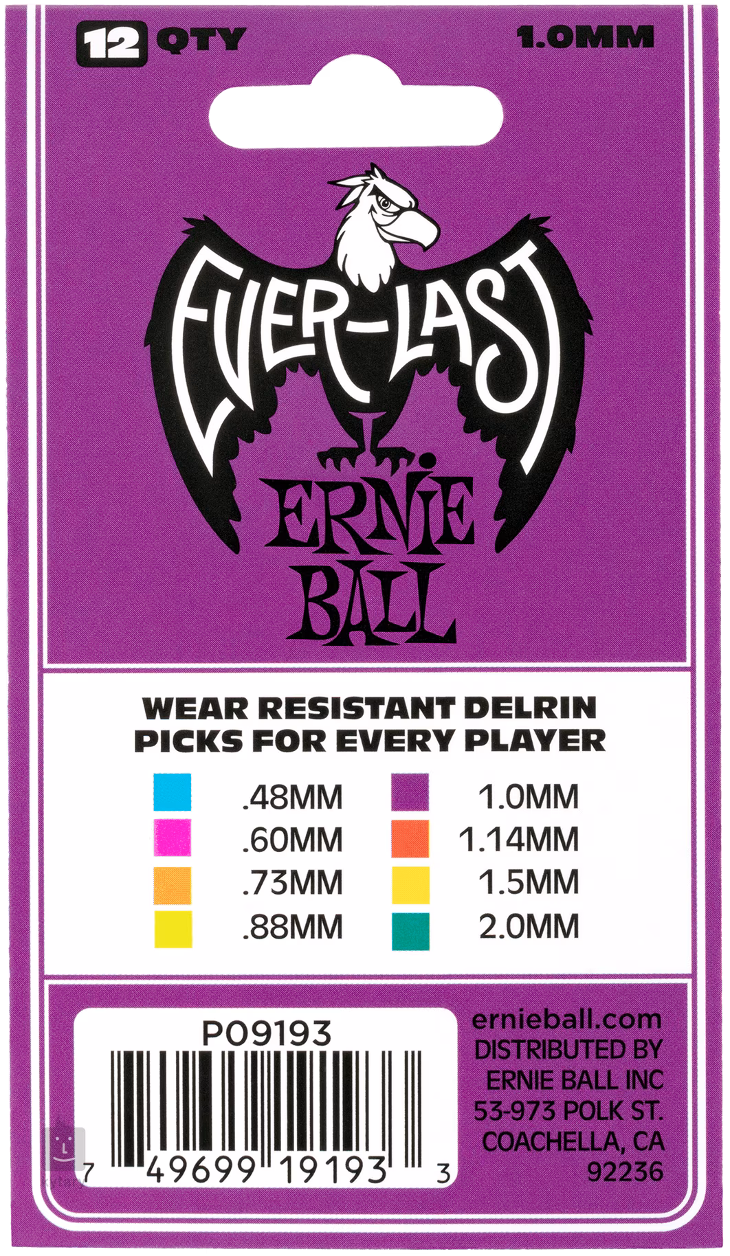 Řada trsátek Everlast značky Ernie Ball je vyrobena z materiálu delrin, který je díky výjimečné pevnosti, odolnosti, stabilitě a nízkému tření hojně používán v průmyslu – ze stejných důvodů je ideálním materiálem také na výrobu trsátek. Trsátko z delrinu vám zajistí jasný a vřelý tón s definovaným atakem. V sadě najdete 12 kusů.