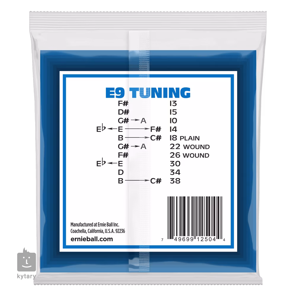 Tloušťky jednotlivých strun jsou 013"/ 015"/ 010"/ 014"/ 018"/ 022"/ 026"/ 030"/ 034"/ 038".