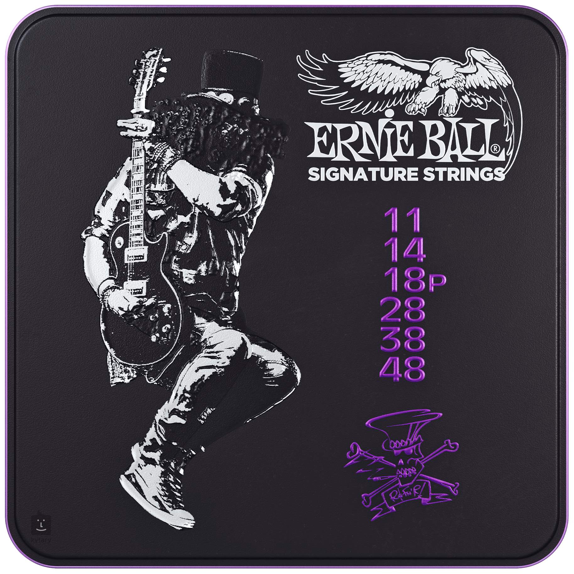 Tato nová limitovaná edice strun je výsledkem dlouholeté spolupráce firmy Ernie Ball s legendárním kytaristou Slashem. Jejich unikátní design je navržen tak, aby byly struny schopny splňovat ty nejnáročnější požadavky a poskytovaly maximálně stabilní ladění, skvělý zvuk a dlouhou životnost. Jádro strun je u této sady tlustší, stejně jako například u řady Paradigm. Vinutí je pak z poniklované oceli, která je ošetřena speciálním plazmovým procesem. Společně s mosazným zpevněním, které najdete u kuličky na nevinutých strunách, je tak výsledkem sada strun s hutným a velice soustředěným zvukem, dlouhou výdrží a schopností perfektně udržet ladění i při opravdu agresivní hře.