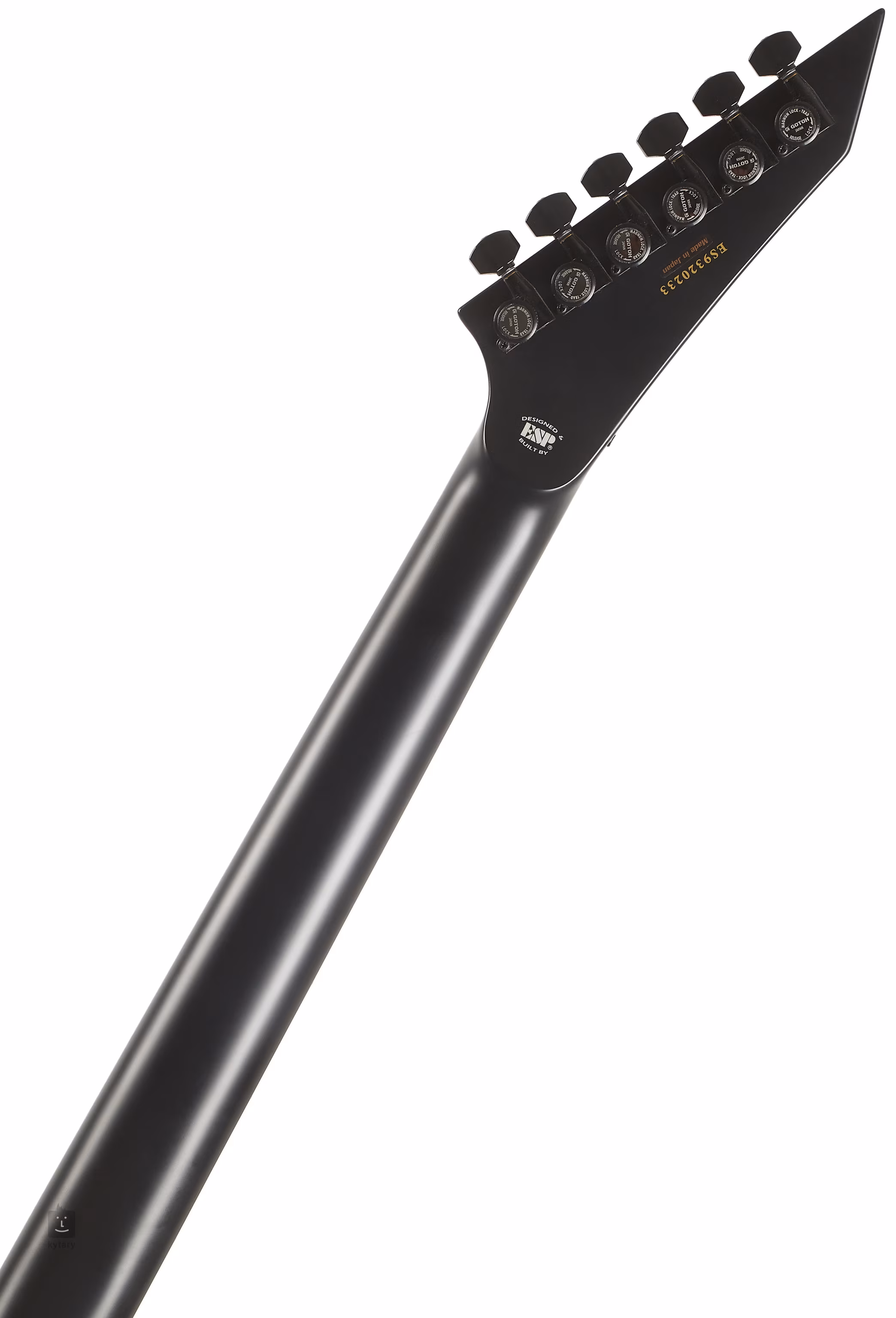 ESP E-II Arrow BLK je elektrická kytara ve vyostřeném ESP designu “véčka”. Konstrukce kytary je složena z olšových křídel a úzkého průchozího krku ze tří kusů javoru. Plochu ebenového hmatníku rozděluje čtyřiadvacet pražců z nerezové oceli velikosti Extra Jumbo. Orientaci na hmatníku usnadňují polohové značky v designu sharkfin (žraločí ploutve).