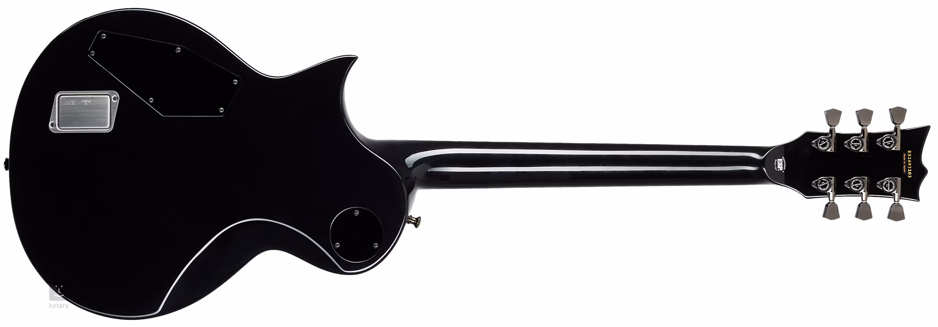 Elektrická kytara E-II Eclipse je single-cut, který už na první pohled zaujme působivou barevnou úpravou Black Natural Burst kontrastující se světlou lemovkou s černými linkami. Tělo nástroje je zhotoveno z mahagonu a parádního topu z fládrovaného javoru. K mahagonovému krku s konstrukcí set-thru, tj. krkem zapuštěným hlouběji do těla, a užším rychlým Thin U profilem je přilepen ebenový hmatník osazený dvaadvaceti pražci typu Extra Jumbo. Orientaci na hmatníku usnadňují polohové bloky.