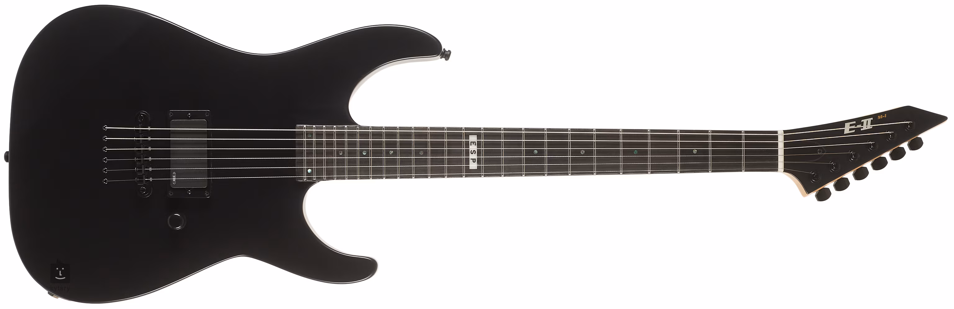 Kytary s moderním tvarem Super ST a označením M (Mirage) jednoduše identifikujete podle plochého topu těla a špičaté hlavice s mechanikami 6-in-line. Konstrukce kytary E-II M-I Neck Thru NT BLKS je složena z olšových křídel a průchozího krku ze tří kusů javoru s užším U profilem. Plochu ebenového hmatníku rozděluje čtyřiadvacet pražců z nerezové oceli velikosti Extra Jumbo. Orientaci na hmatníku usnadňují perleťové poziční značky.