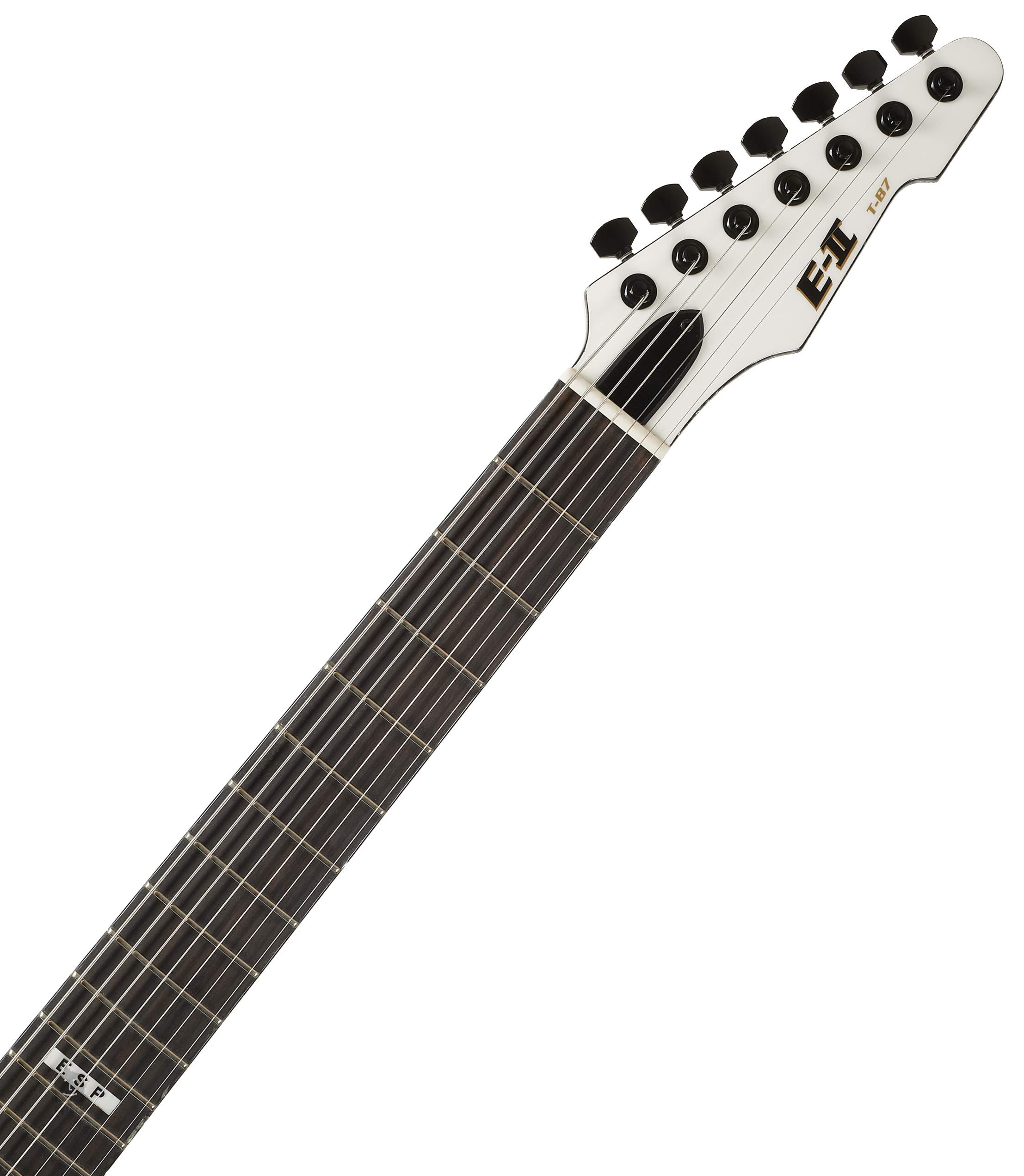 Konstrukce sedmistrunné barytonové elektrické kytary E-II T-B7 Baritone SNW v single-cut designu je složena z olšových křídel a rychlého průchozího krku ze tří kusů javoru s Thin U profilem. Ebenový hmatník je osazený čtyřiadvaceti pražci z nerezové oceli typu Extra Jumbo. Díky barytonové menzuře 686 mm si kytara poradí i s extrémním podladěním.