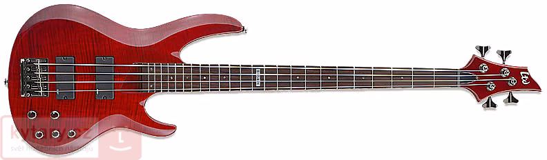 Elektrická čtyřstrunná baskytara typu B ze série LTD Standard, tělo lípa, top z fládrovaného javoru, krk javor, šroubovaný, konfigurace snímačů HB – HB (ESP SB-4), aktivní elektronika, 3 pásmový EQ, 24 pražců, provedení See Thru Red