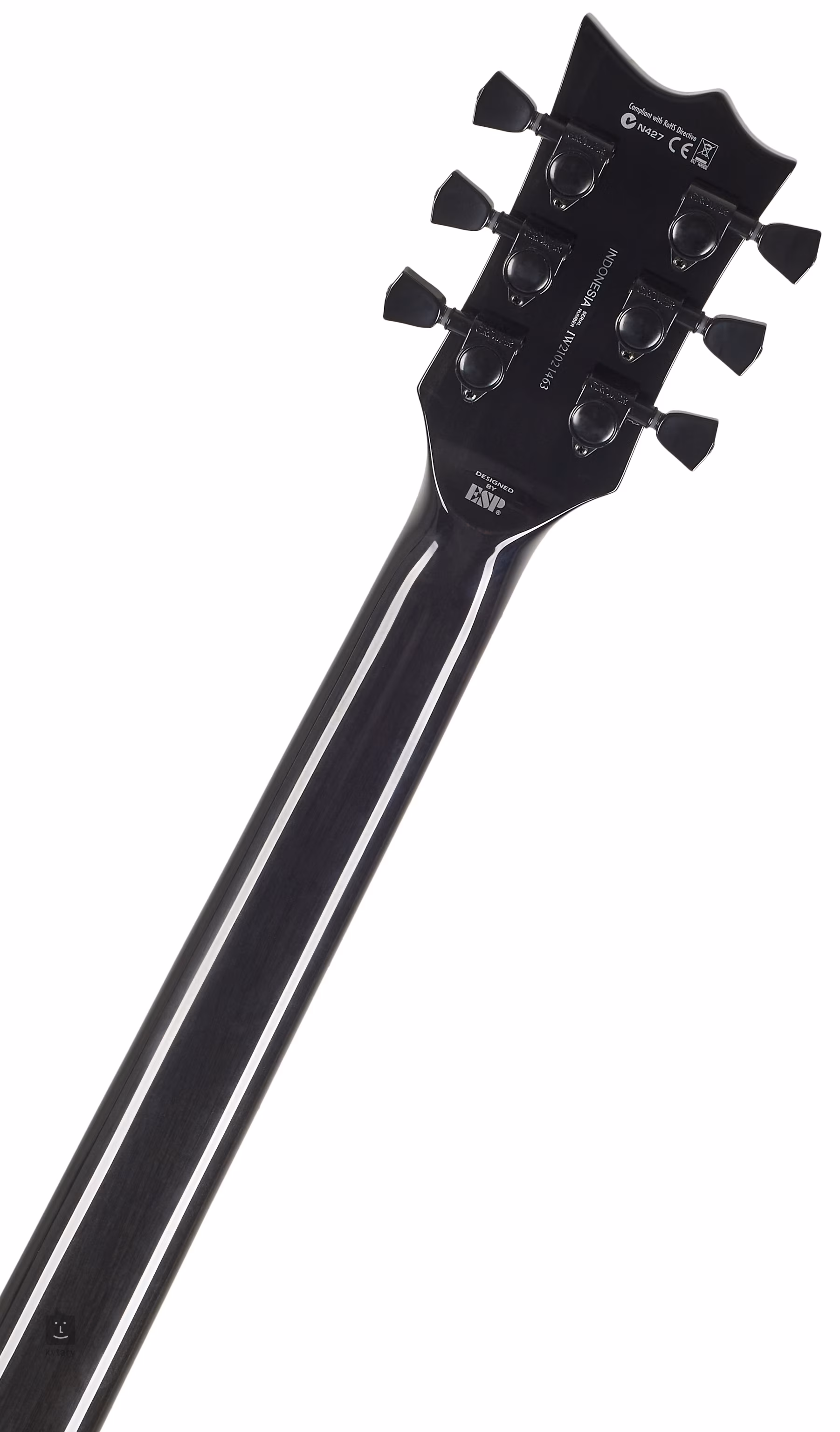 Mahagonové tělo modelu EC-1000ET FM SEE THRU BLACK zdobí javorový top a efektní vrchní dýha z fládrovaného javoru s výraznou kresbou dřeva. Ke krku složeného ze tří kusů mahagonu s konstrukcí set-thru, tj. krkem zapuštěným hlouběji do těla, je přilepen hmatník z ebenu makassar osazený čtyřiadvaceti pražci velikosti Extra Jumbo. Orientaci na hmatníku usnadňují polohové bloky.