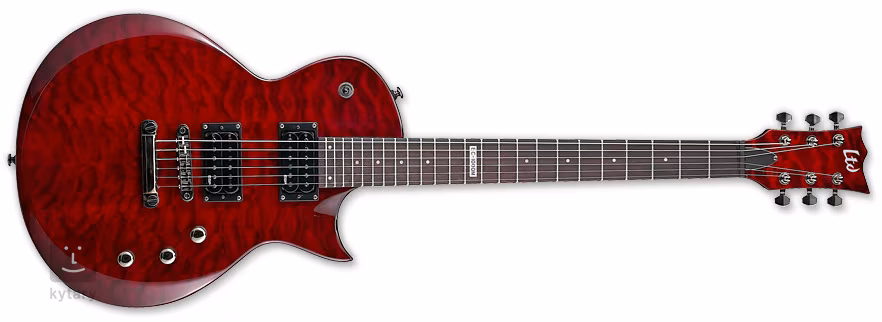Elektrická kytara typu Les Paul ze série LTD Standard, tělo lípa, krk javor, šroubovaný, konfigurace snímačů HB – HB (ESP LH-150), 24 pražců, provedení See Thru Black Cherry