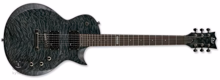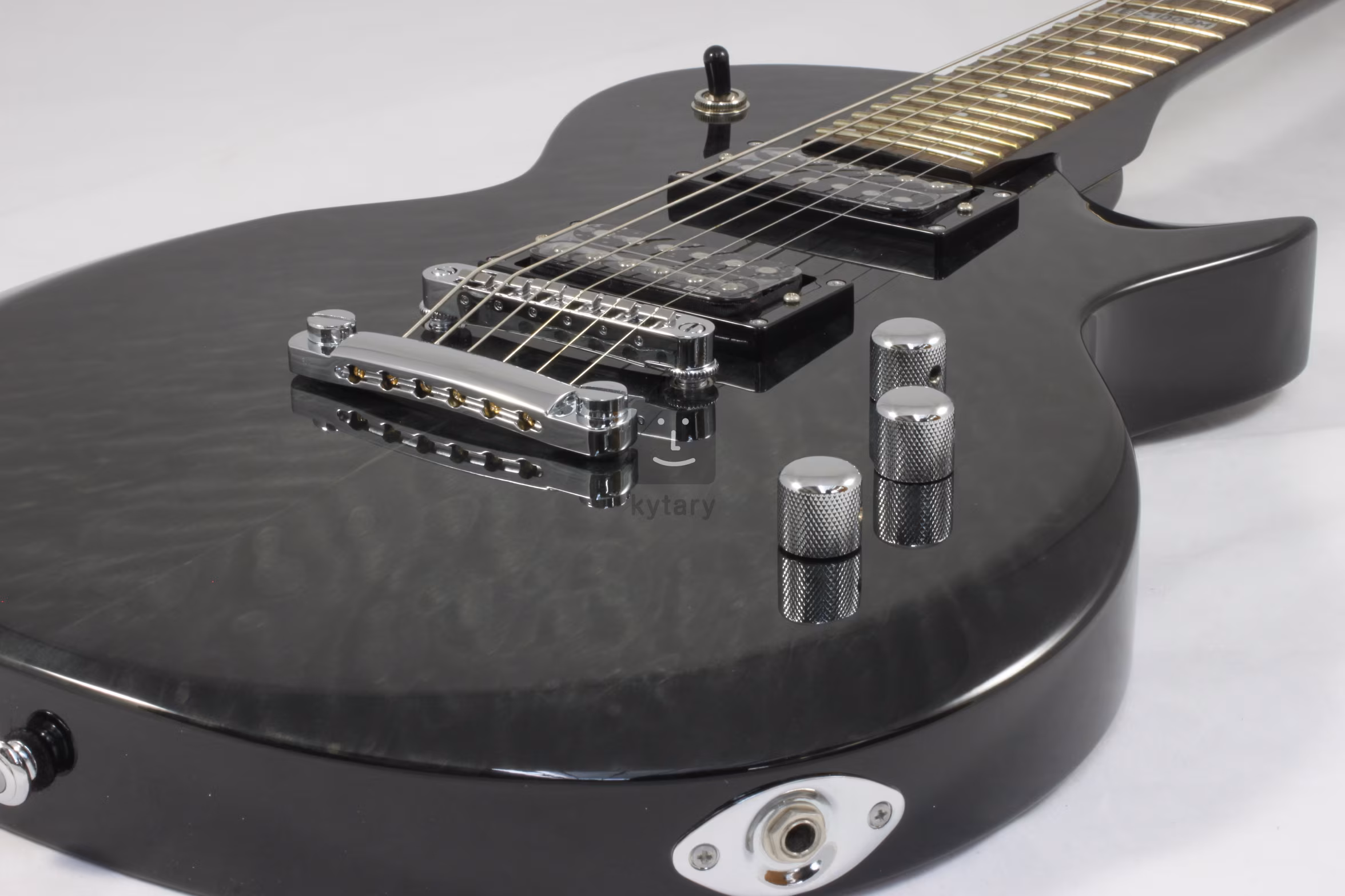 Elektrická kytara typu Les Paul ze série LTD Standard, tělo lípa, krk javor, šroubovaný, konfigurace snímačů HB – HB (ESP LH-150), 24 pražců, provedení See Thru Black