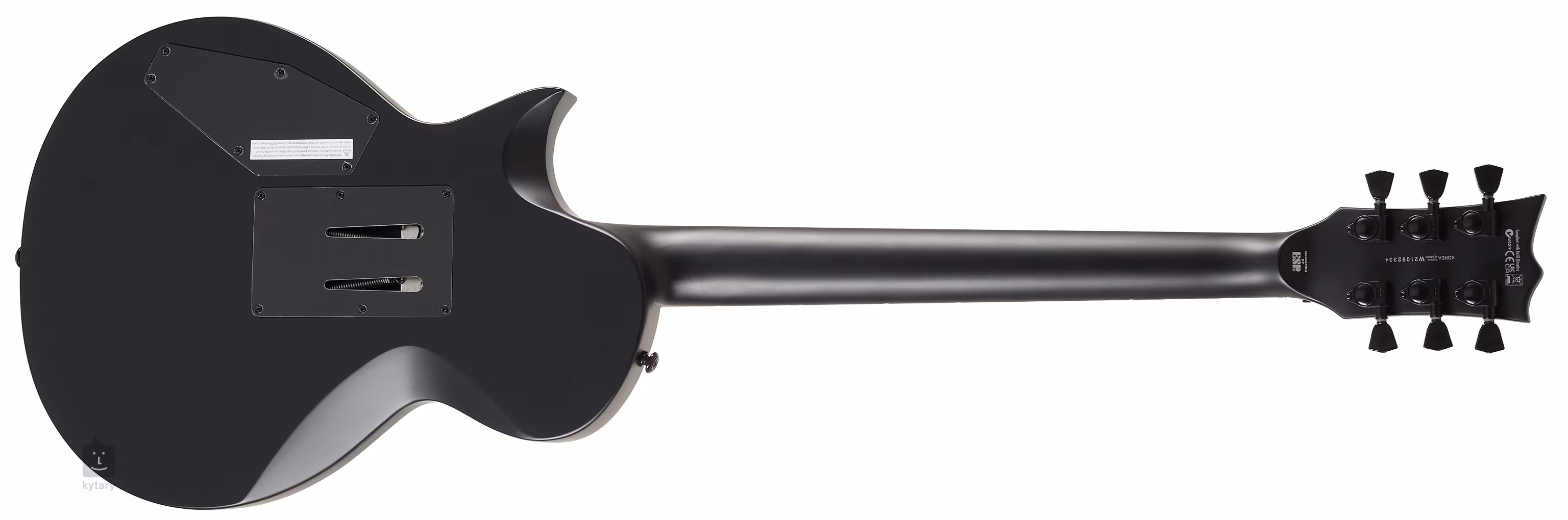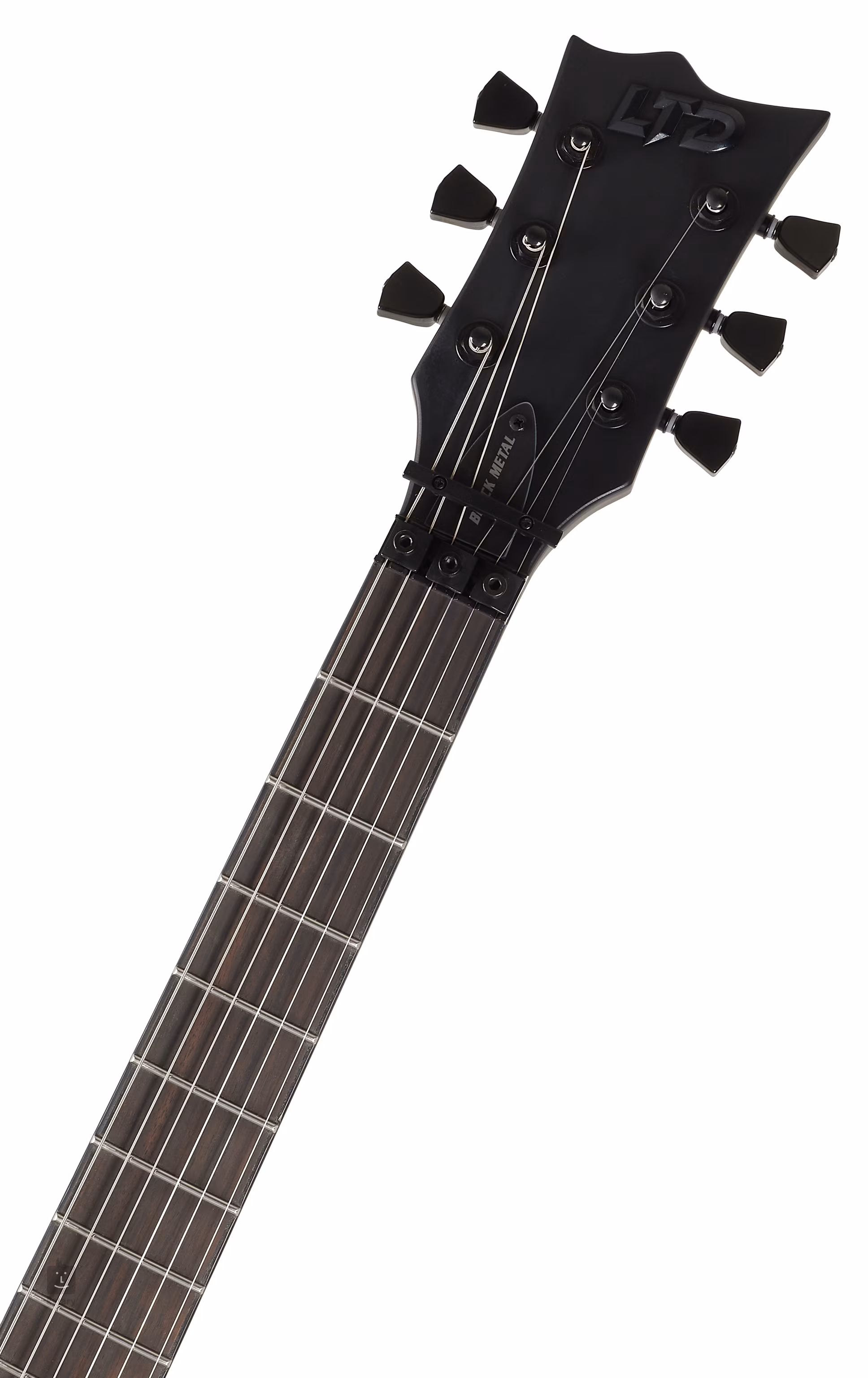 Řada ESP LTD Black Metal nabízí elektrické kytary ve srovnatelné kvalitě zpracování s modelovou sérií LTD Deluxe ”1000”, od které se odlišují minimalistickým ovládáním, a především naprosto nekompromisním tmavě černým designem veškerých komponentů. Cíleně tak míří mezi hráče extrémních metalových žánrů, co hledají kytaru se stylovým designem a řádně nabroušeným zvukem pro důstojnou prezentaci na koncertních pódiích i studiových nahrávkách. Tělo single-cut modelu EC-FR BLACK METAL BLACK SATIN je zhotoveno z mahagonu. Ke krku složeného ze tří kusů mahagonu s konstrukcí set-thru, tj. krkem zapuštěným hlouběji do těla, je přilepen hmatník z ebenu makassar osazený čtyřiadvaceti pražci velikosti Extra Jumbo. Pasivní humbucker Blackened Black Winter nabízí dobré zkreslení, vysoký výstupní signál a typicky chladný „skandinávský“ tón, který díky funkci Push/Pull ovladače hlasitosti můžete změnit na charakter single-coilu. Struny jsou uchyceny v kvalitních ladicích mechanikách značky Grover a Floyd Rose 1000 tremolu s jehož pomocí zpestříte hru působivými zvukovými efekty. Zámky na nultém pražci zajišťují maximální stabilitu ladění i při častém používání páky. Firma ESP se výrobě elektrických kytar věnuje již od roku 1984 a mezi její spokojené zákazníky patří například Kirk Hammett, James Hetfield, Ronnie Wood nebo Max Cavalera. Díky popularitě těchto nástrojů vznikla i dceřiná společnost LTD, která nabízí oblíbené modely v dostupné variantě. I v případě kytar ESP-LTD je však kladen velký důraz na kvalitu zpracování a osazovaných komponentů.