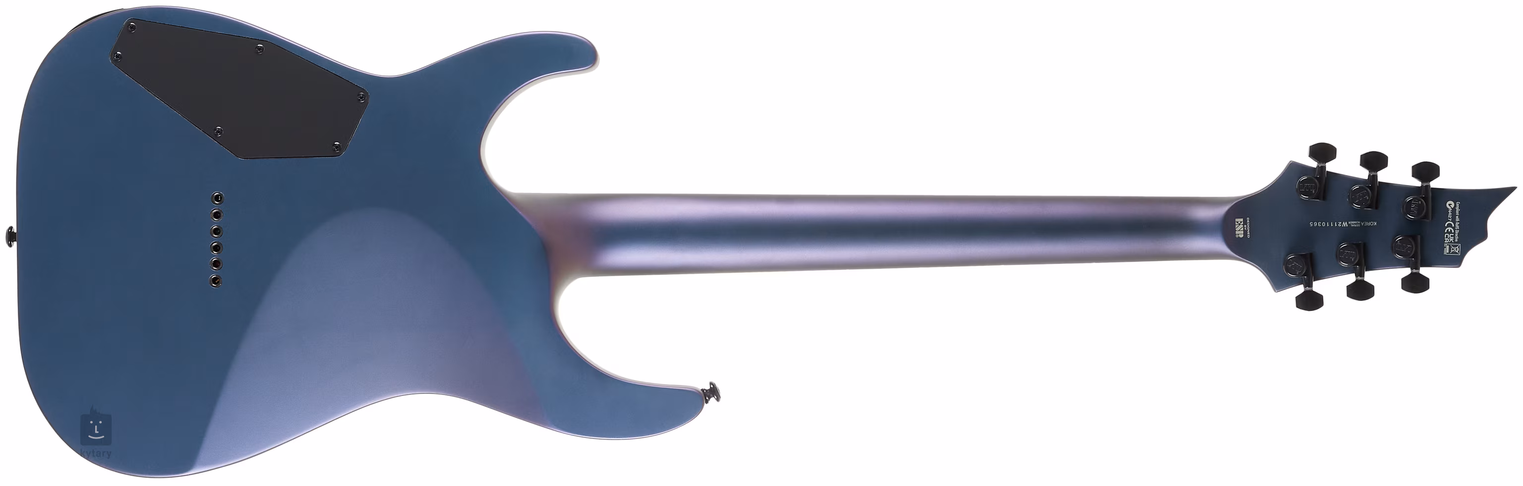 Mahagonové tělo s klenutým topem Super ST modelu H-1001 VIOLET ANDROMEDA SATIN zdobí efektní proměnlivý finiš Violet Andromeda Satin, který mění barvu v závislosti na úhlu dopadu světla. Ke krku složeného ze tří kusů javoru s konstrukcí set-thru, tj. krkem zapuštěným hlouběji do těla, je přilepen hmatník z ebenu makassar osazený čtyřiadvaceti pražci z nerezové oceli velikosti Extra Jumbo. Orientaci na hmatníku usnadňují offset polohové značky.