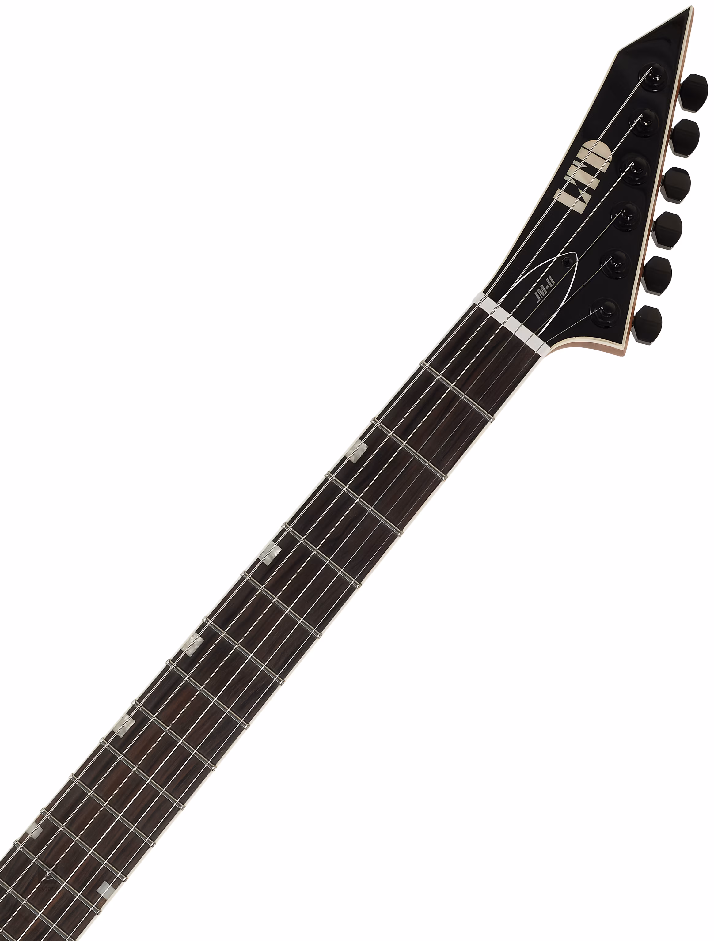 Elektrická kytara JM-II BLACK SHADOW BURST Josh Middleton je signature model frontmana britské metalové/metalcorové formace Sylosis a bývalého kytaristy Architects. Olšové tělo kytary zdobí top z obláčkového javoru s pěknou kresbou dřeva umocněnou efektním barevným finišem. K přišroubovanému krku ze tří kusů „pečeného“ javoru (Roasted Maple) je přilepen hmatník z ebenu makassar osazený čtyřiadvaceti pražci z nerezové oceli velikosti Extra Jumbo. Orientaci po ploše hmatníku usnadňují offset polohové značky.